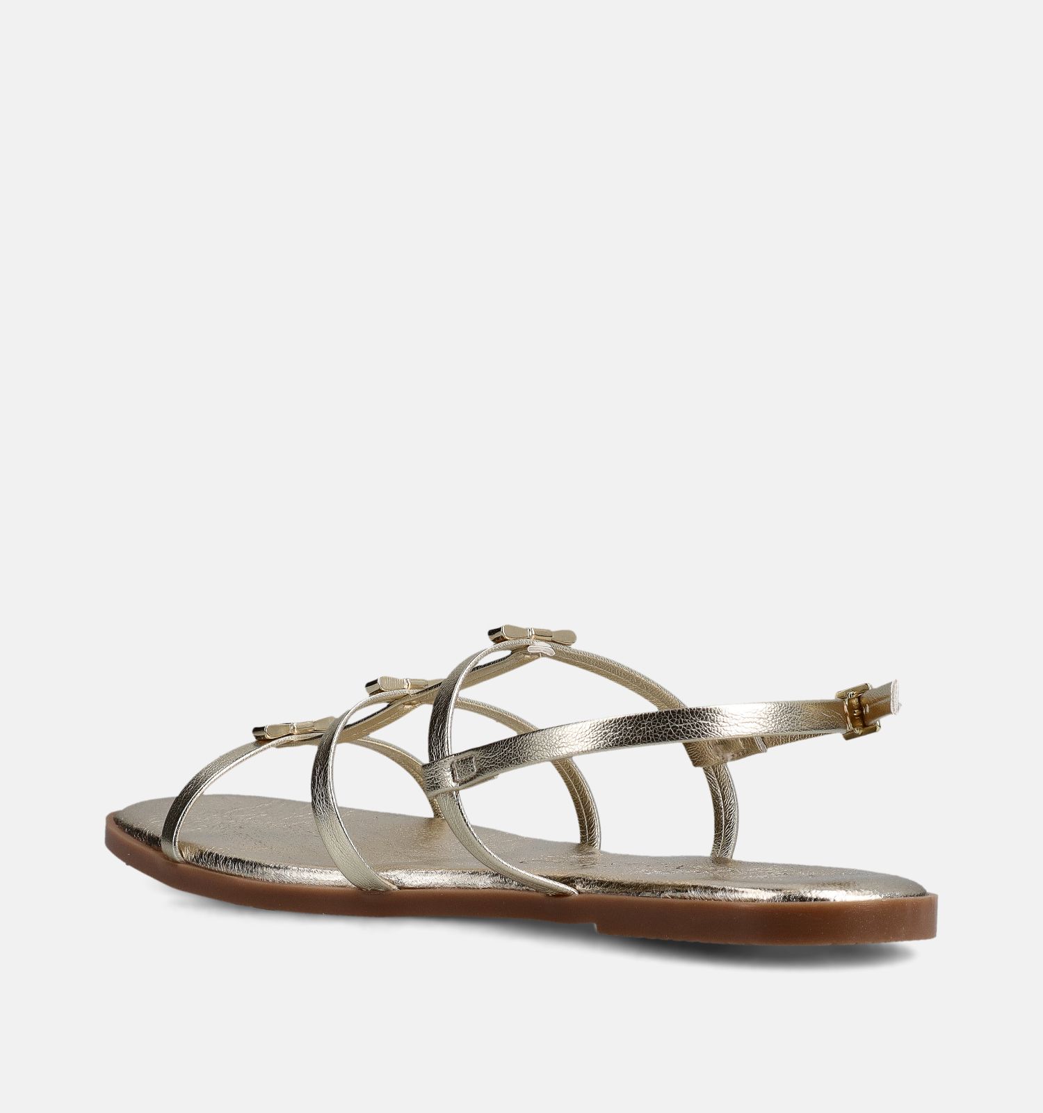 Deze platte sandalen in de kleur goud zijn vervaardigd uit kwalitatief leer. Het lichte materiaal helpt vermoeide voeten te voorkomen — zorgeloos genieten, dat doe je met Laurent David !