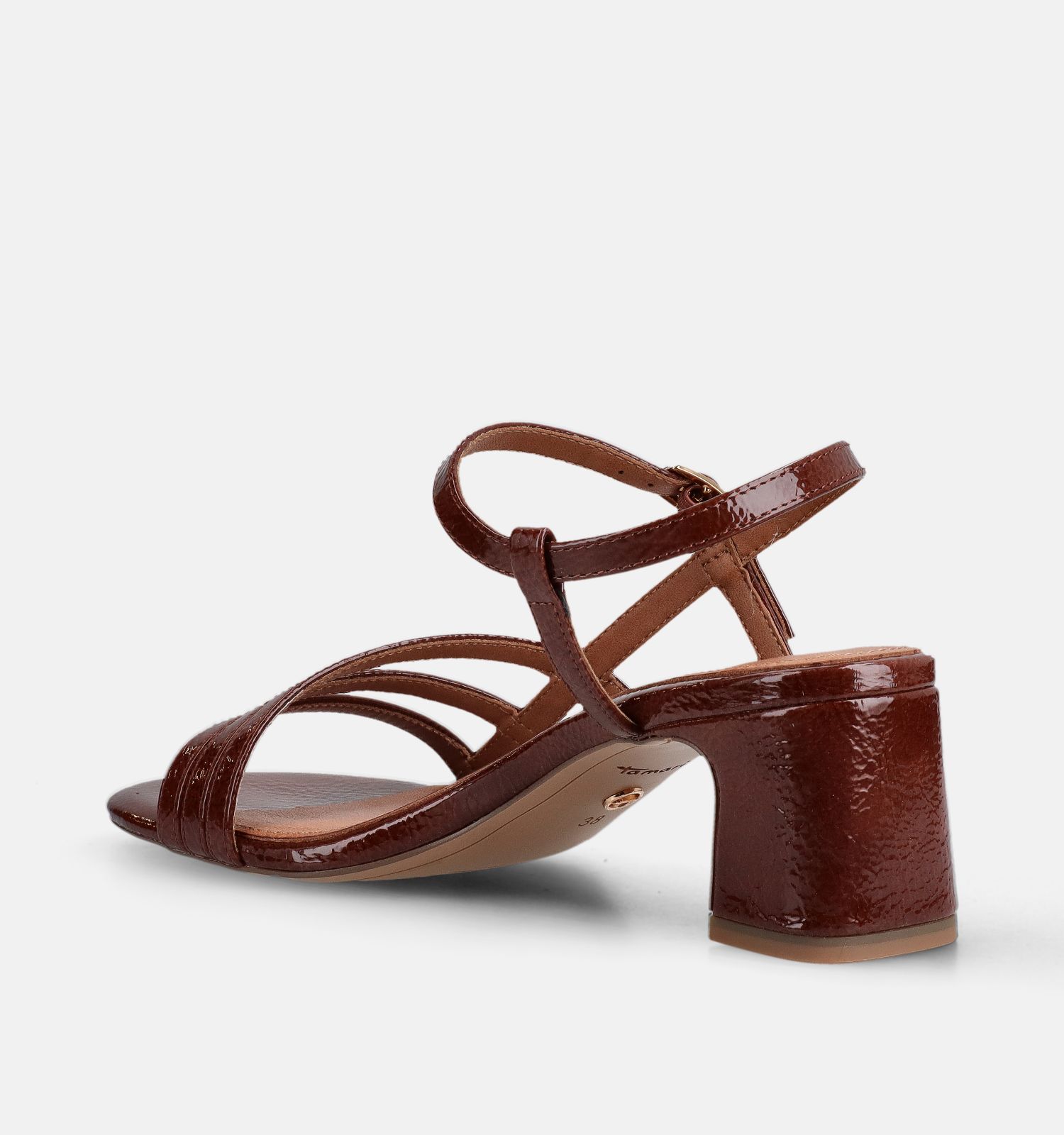 Goed om te weten met het oog op onderhoud: deze Tamaris sandaletten zijn vervaardigd uit lak.