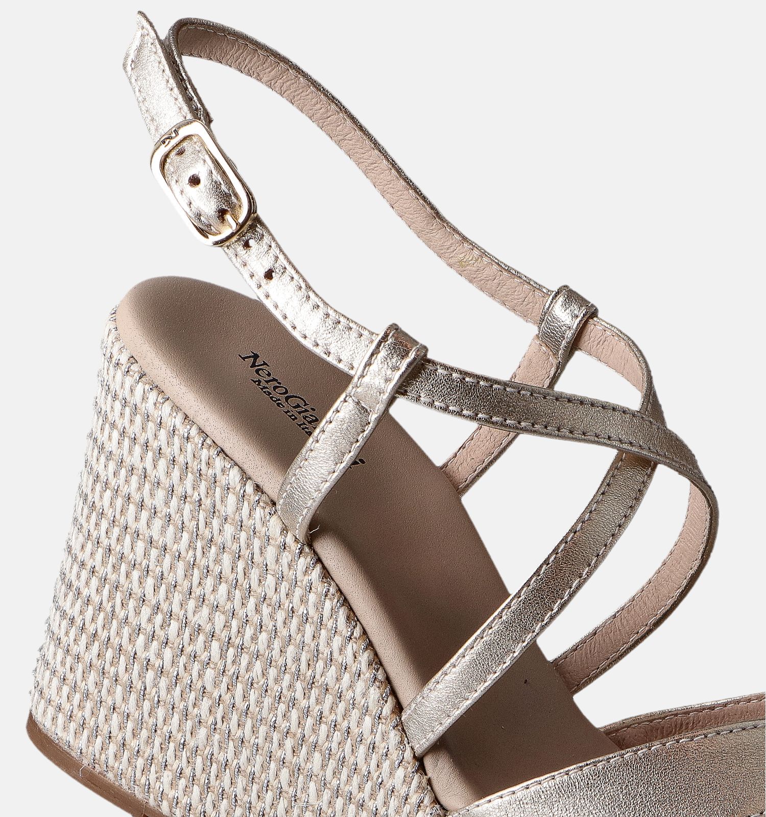 Deze sandalen op sleehak van NeroGiardini (in de kleur goud) zijn allergievriendelijk: ze zijn chroomvrij, nikkelvrij en de lijm is op waterbasis. Dat is goed voor het milieu én jouw voeten. Dat verschil merk je! Kiezen voor Italiaanse topkwaliteit, zoals deze gouden NeroGiardini sandalen, is altijd een goede beslissing. Dat kan je van ons aannemen!