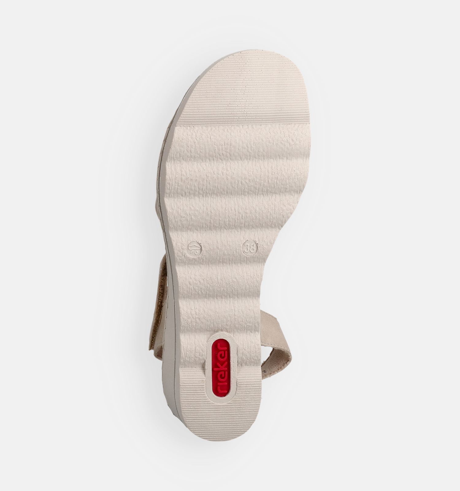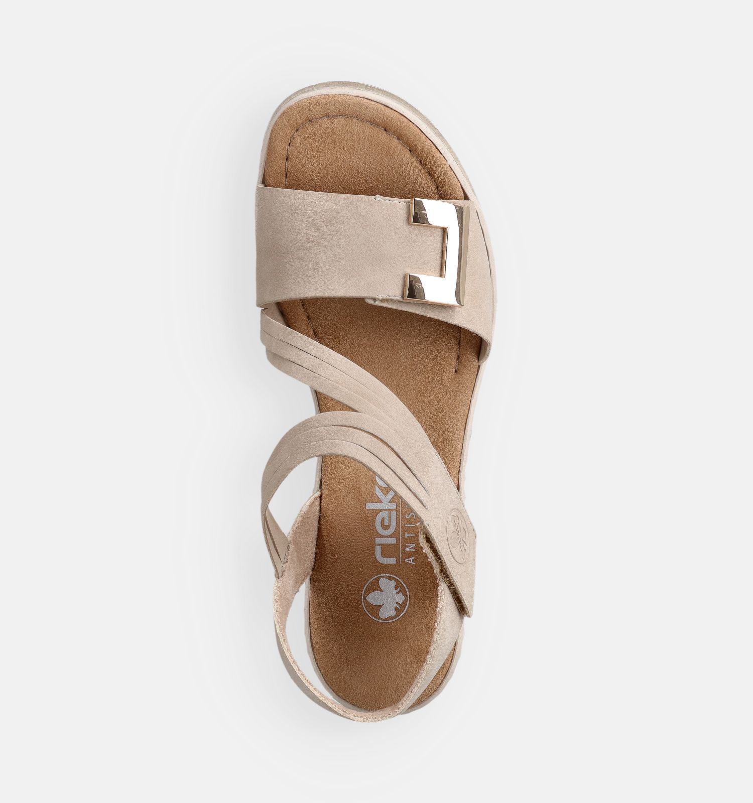 Deze Rieker sandalen voor dames zijn anti-stress schoenen. Dit betekent dat deze beige sandalen optimaal comfort bieden, de hele dag door. De schokdempende schoenzolen verkleinen de wandelimpact en verspreiden de druk over de hele zool heen.