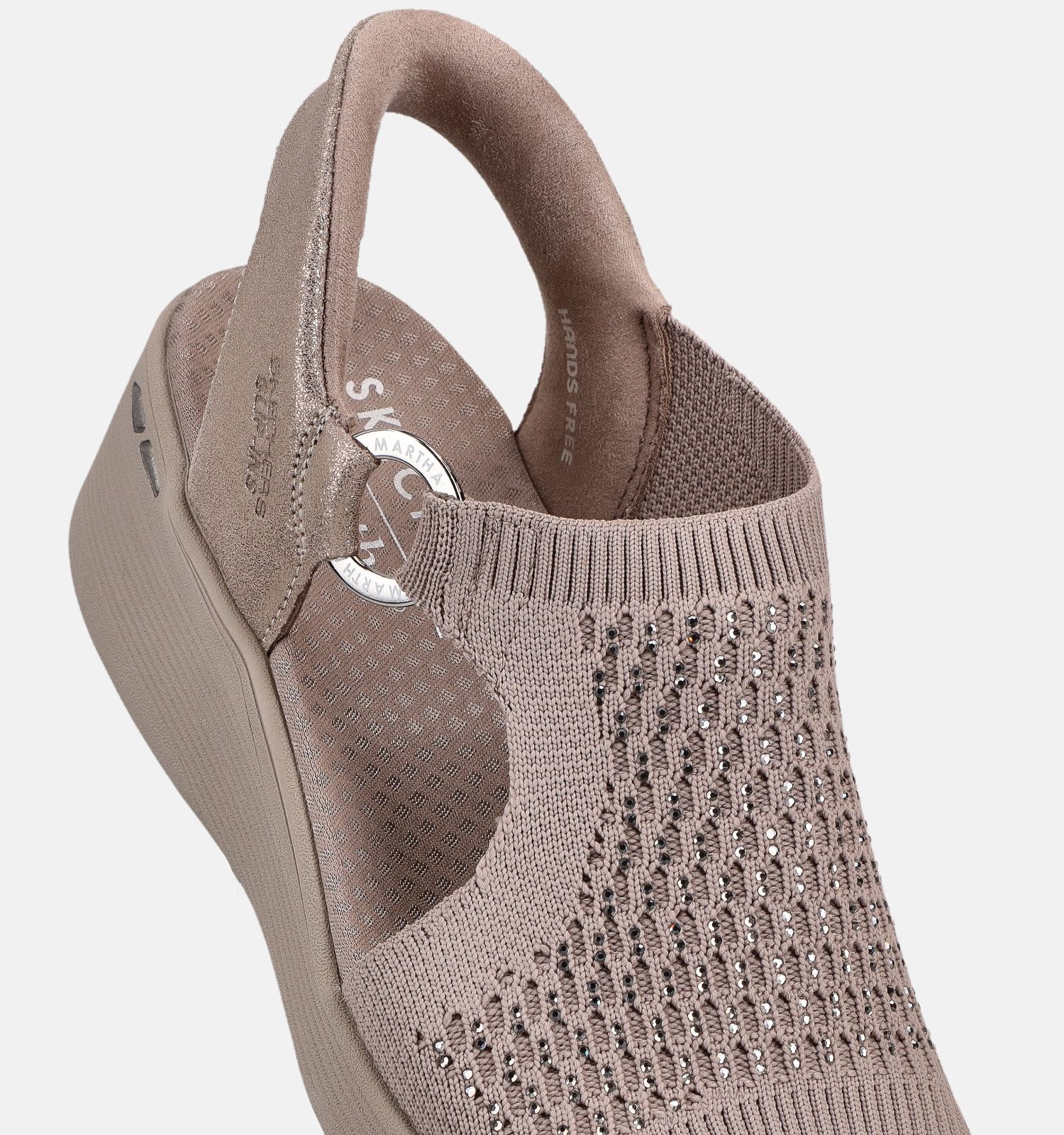 Belangrijk om te weten naar onderhoud toe: deze Skechers sandalen voor dames zijn vervaardigd uit stof binnenin, met versterkt stof aan de buitenkant. Dit taupe exemplaar heeft een elastieksluiting.