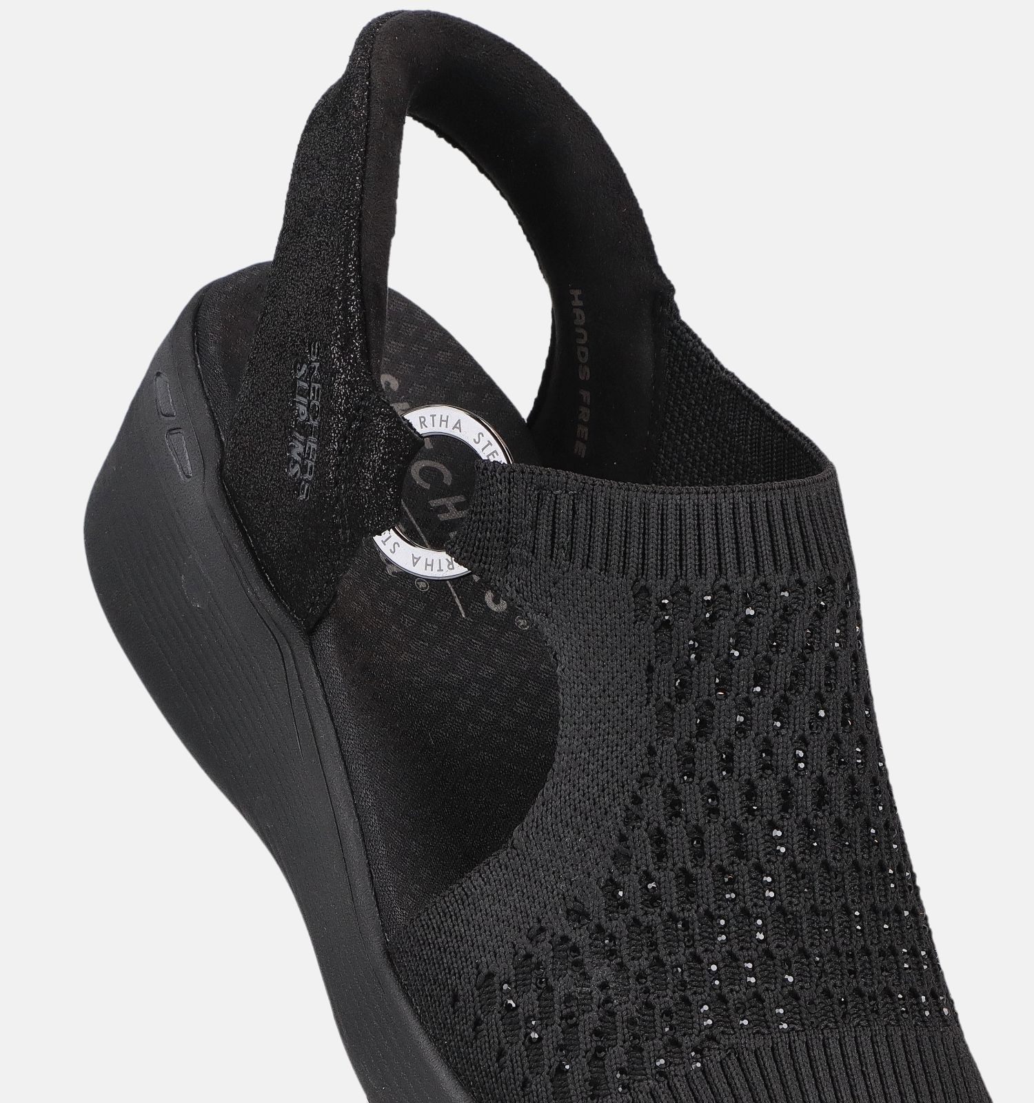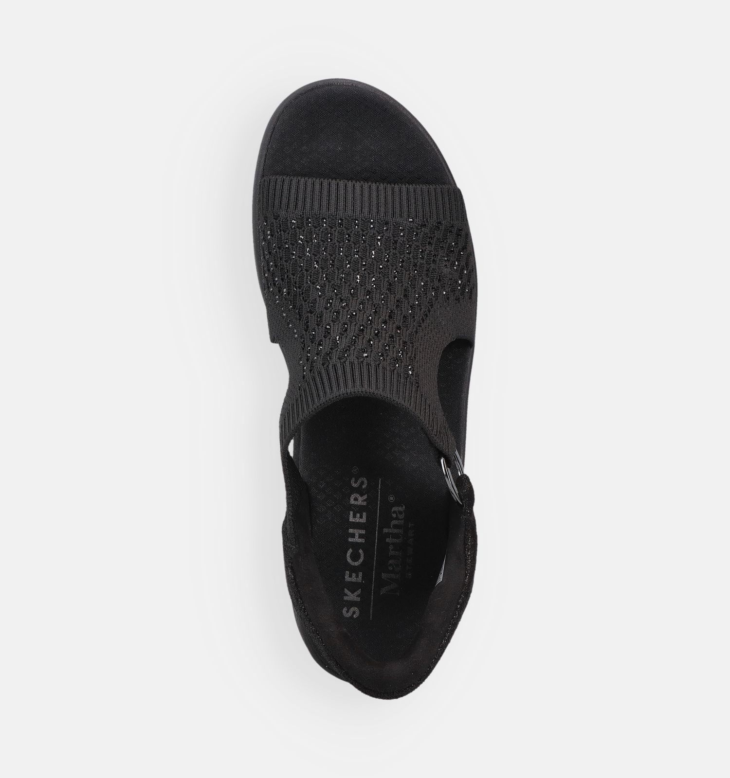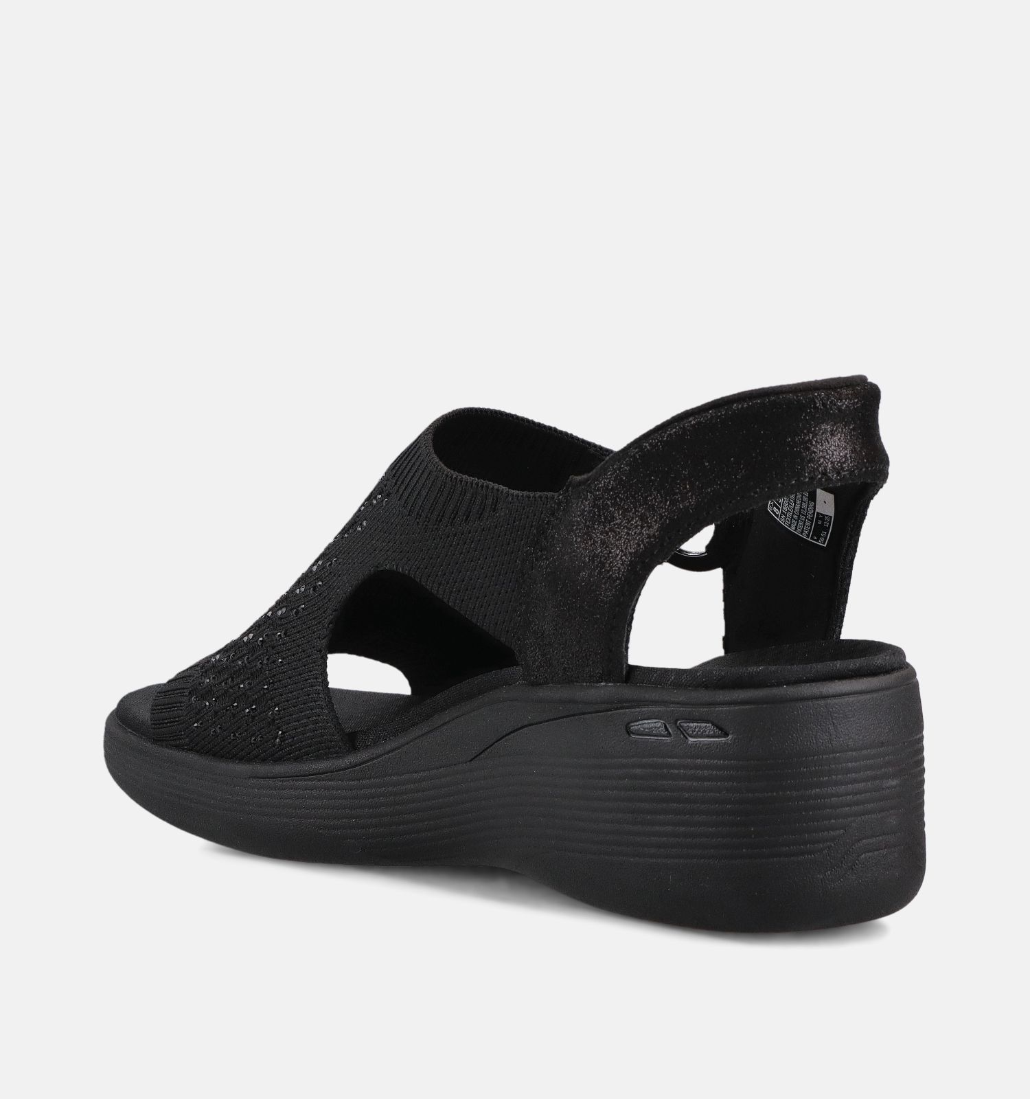 Belangrijk om te weten naar onderhoud toe: deze Skechers sandalen voor dames zijn vervaardigd uit stof binnenin, met versterkt stof aan de buitenkant. Dit zwarte exemplaar heeft een elastieksluiting.