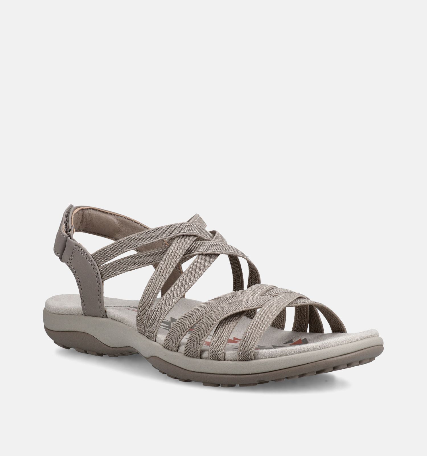 Belangrijk om te weten naar onderhoud toe: deze Skechers sandalen voor dames zijn vervaardigd uit stof binnenin, met versterkt stof aan de buitenkant. Dit taupe exemplaar heeft een velcrosluiting.