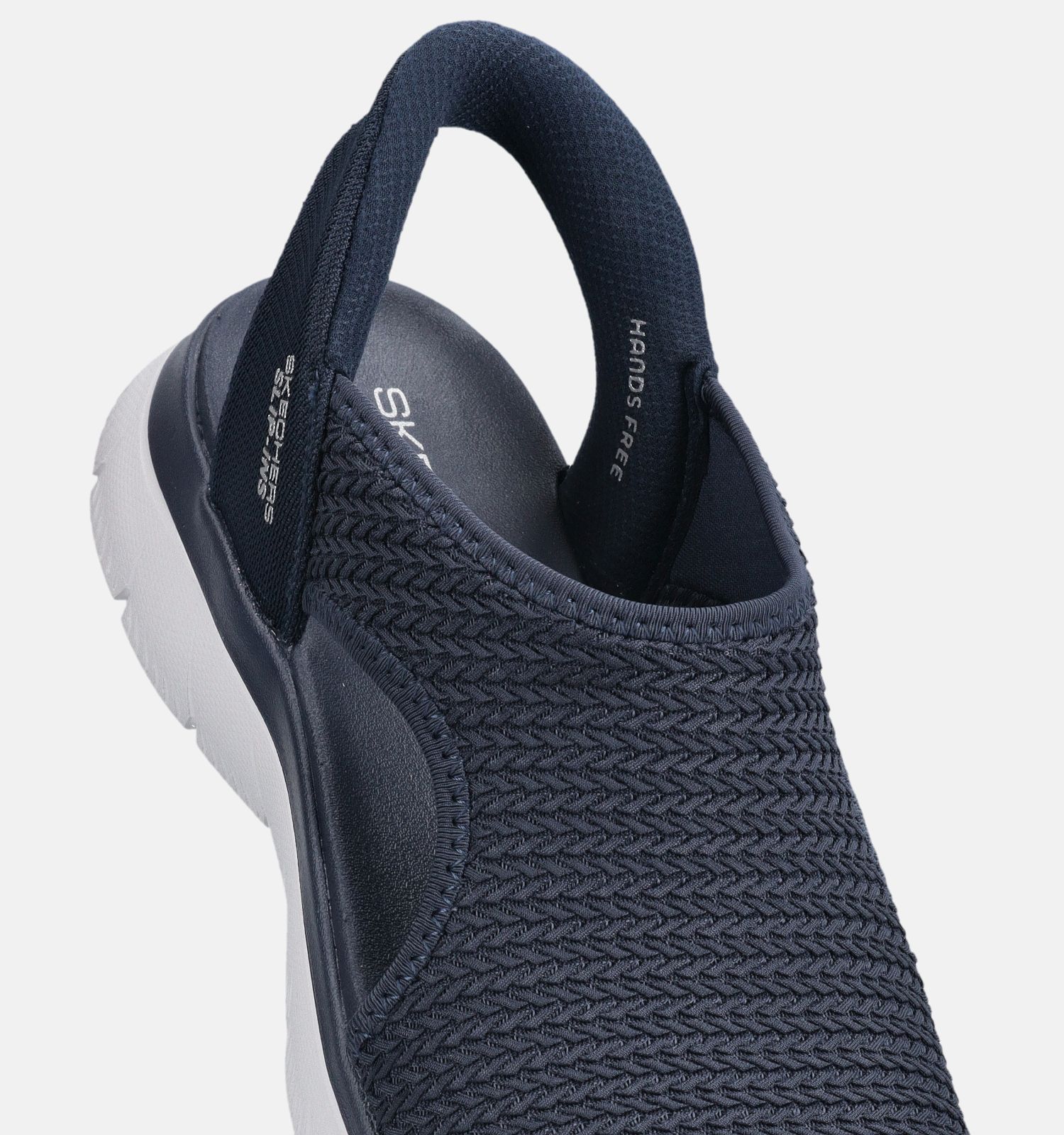 Belangrijk om te weten naar onderhoud toe: deze Skechers sandalen voor dames zijn vervaardigd uit stof binnenin, met versterkt stof aan de buitenkant. Dit blauwe exemplaar heeft een elastieksluiting.