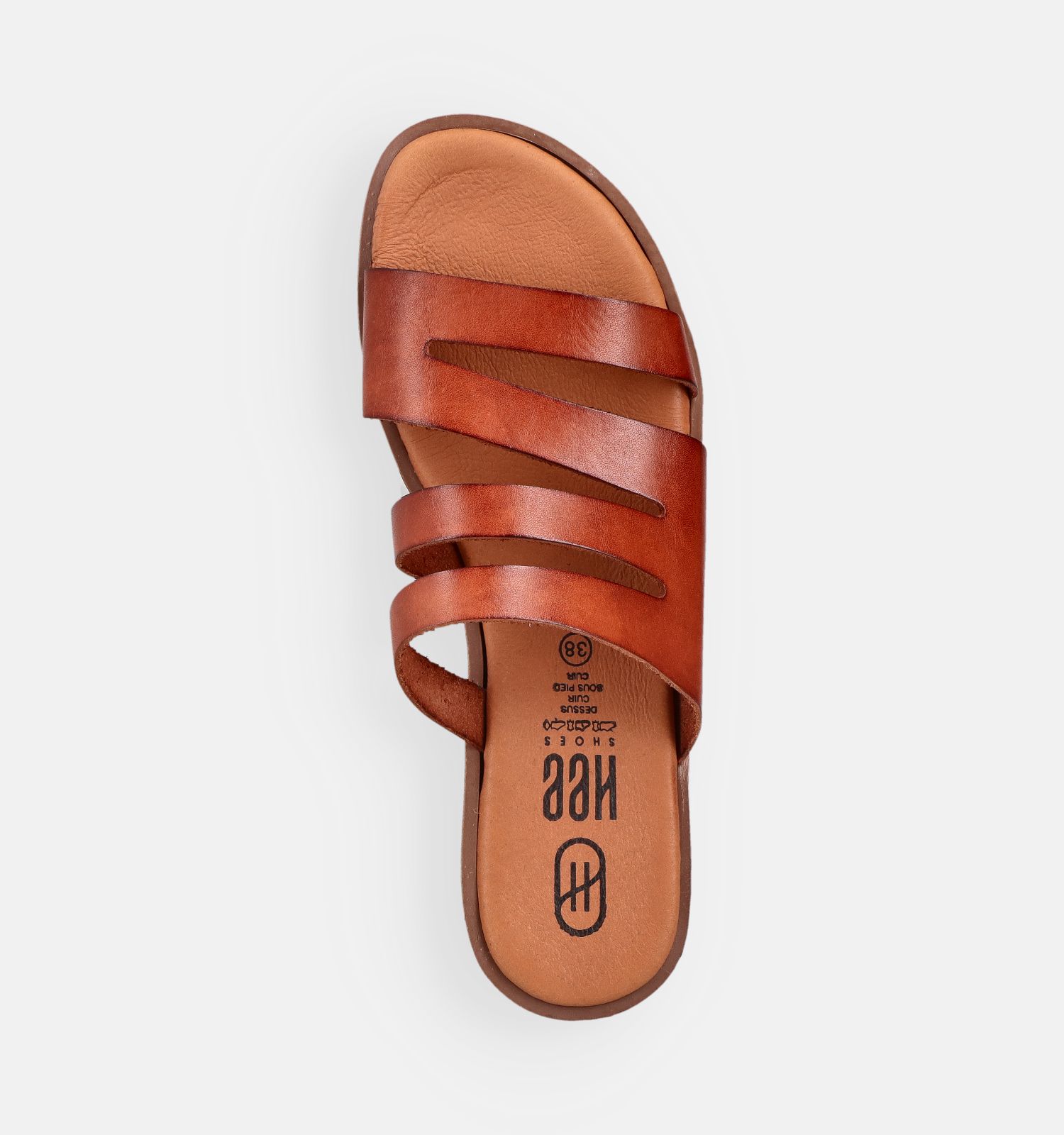 Deze lichte slipper in cognac leer heeft een fijne pasvorm voor voetbreedte F - Normale voet. Het kwalitatieve voetbed van Hee uit leer voelt zacht aan je voeten. Dat is extra fijn wanneer de temperaturen buiten de hoogte in gaan! Met deze cognac slippers loop je de hele dag op wolken.