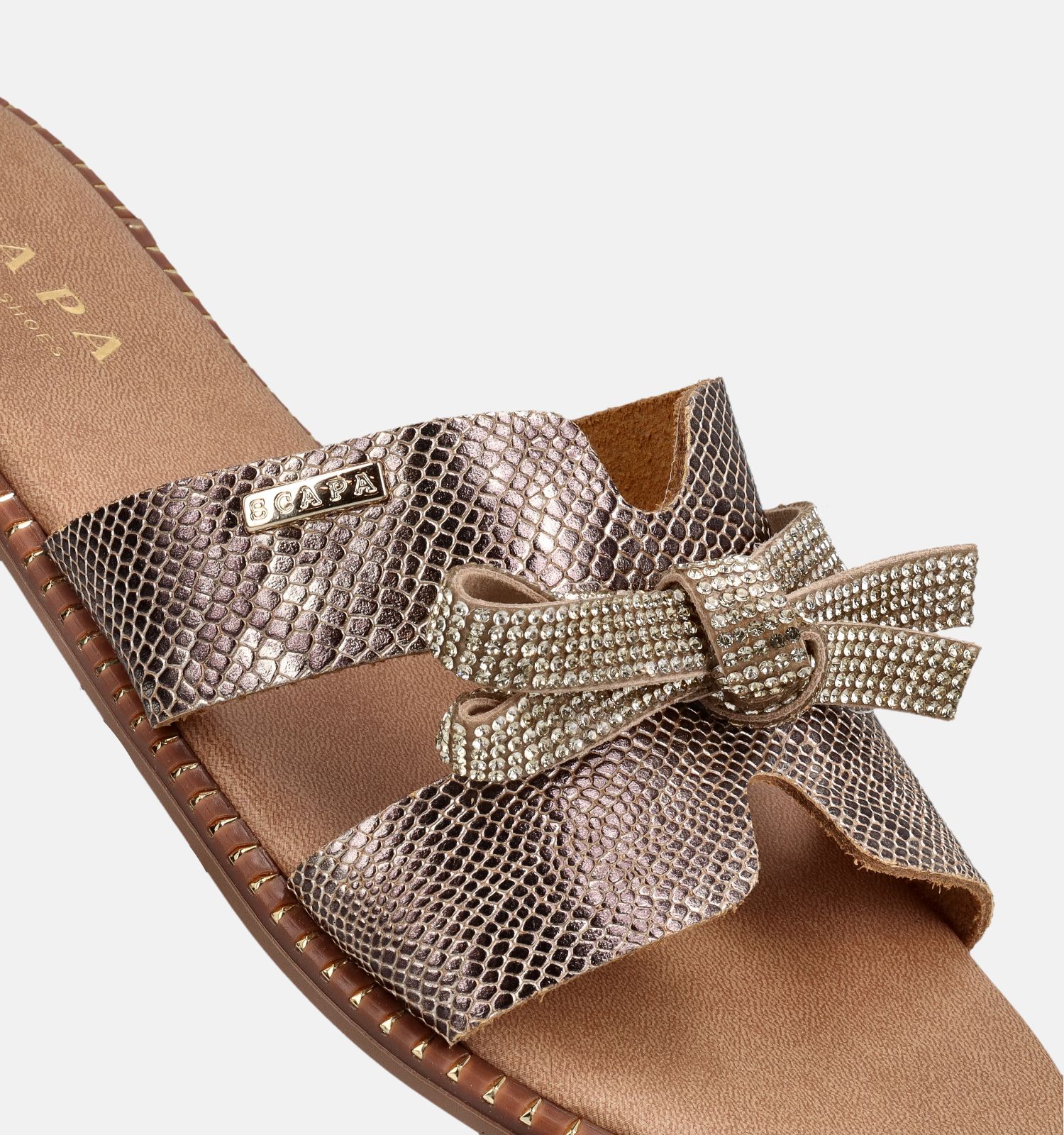 Deze gouden slippers van het merk Scapa zien er chic uit en voelen minstens even comfortabel aan. Dat maakt deze platte slippers uit leer een topkeuze voor elke zomerse gelegenheid – van op het strand tot op jouw terras. De Scapa slippers maken elke outfit wat trendier, chiquer en zomerser. Én ze zijn een leuke afwisseling voor wie eens iets anders wil dan sneakers of sandalen.