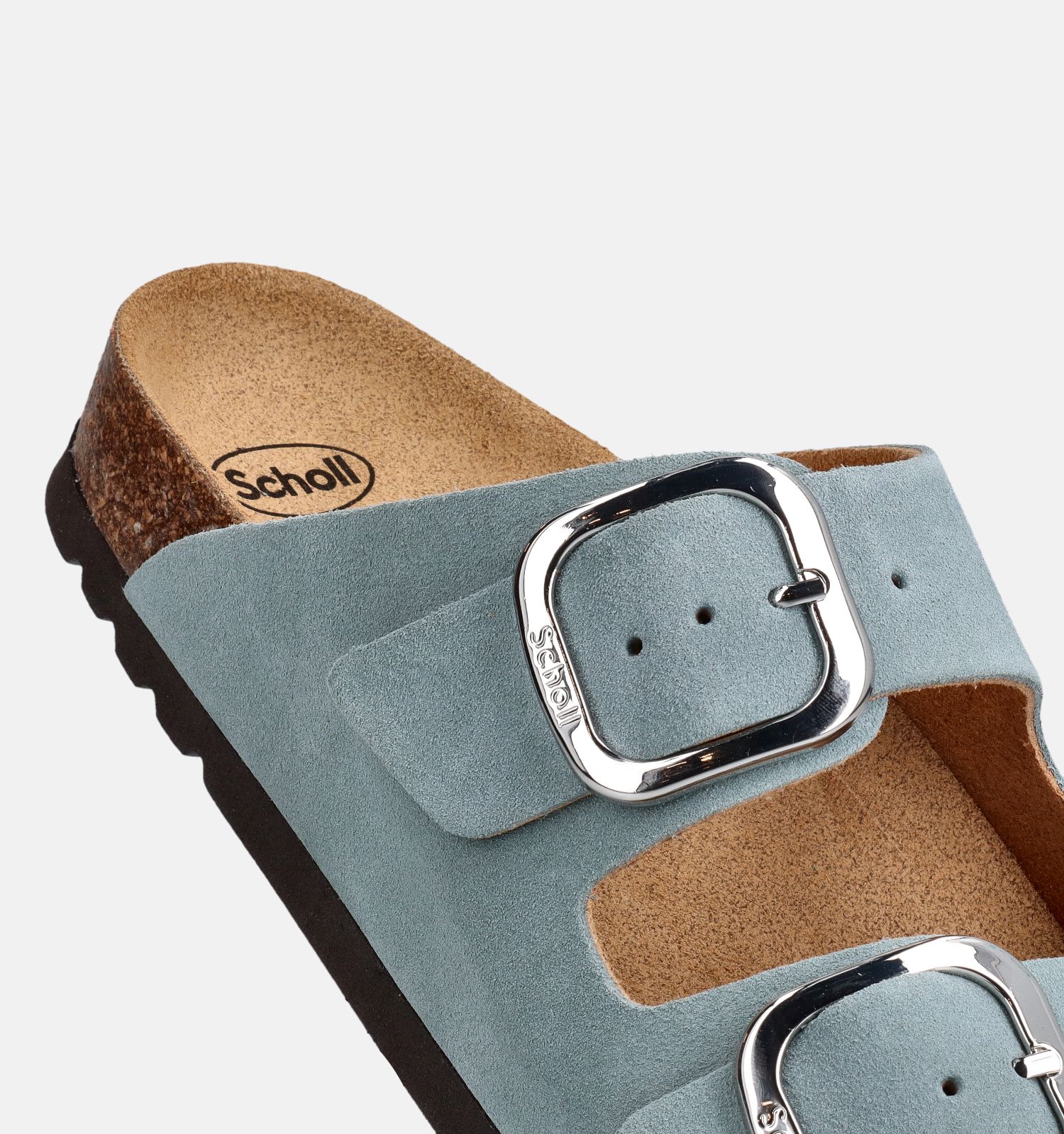 Deze platte muiltjes van Scholl zijn vervaardigd uit kwalitatief suède en afgewerkt met een binnenvoering van suède. Deze lichtgewicht materialen voelen zacht en comfortabel aan op de huid. Dit blauwe model is geschikt voor voetbreedtes F - Normale voet. Je weet dat de voetbreedte en schoenmaat goed zijn voor jou als je hielen en tenen volledig binnen het voetbed van deze Scholl slippers blijven. De band van deze blauwe slippers moet stevig rond je voeten zitten, maar zeker niet te strak aanvoelen.