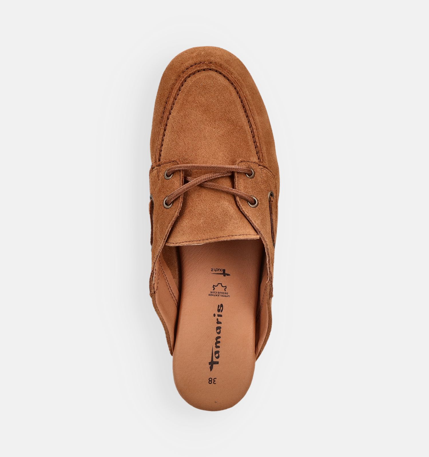 Deze platte muiltjes van Tamaris zijn vervaardigd uit kwalitatief suède en afgewerkt met een binnenvoering van leer. Deze lichtgewicht materialen voelen zacht en comfortabel aan op de huid. Dit cognac model is geschikt voor voetbreedtes F - Normale voet. Je weet dat de voetbreedte en schoenmaat goed zijn voor jou als je hielen en tenen volledig binnen het voetbed van deze Tamaris slippers blijven. De band van deze cognac slippers moet stevig rond je voeten zitten, maar zeker niet te strak aanvoelen.