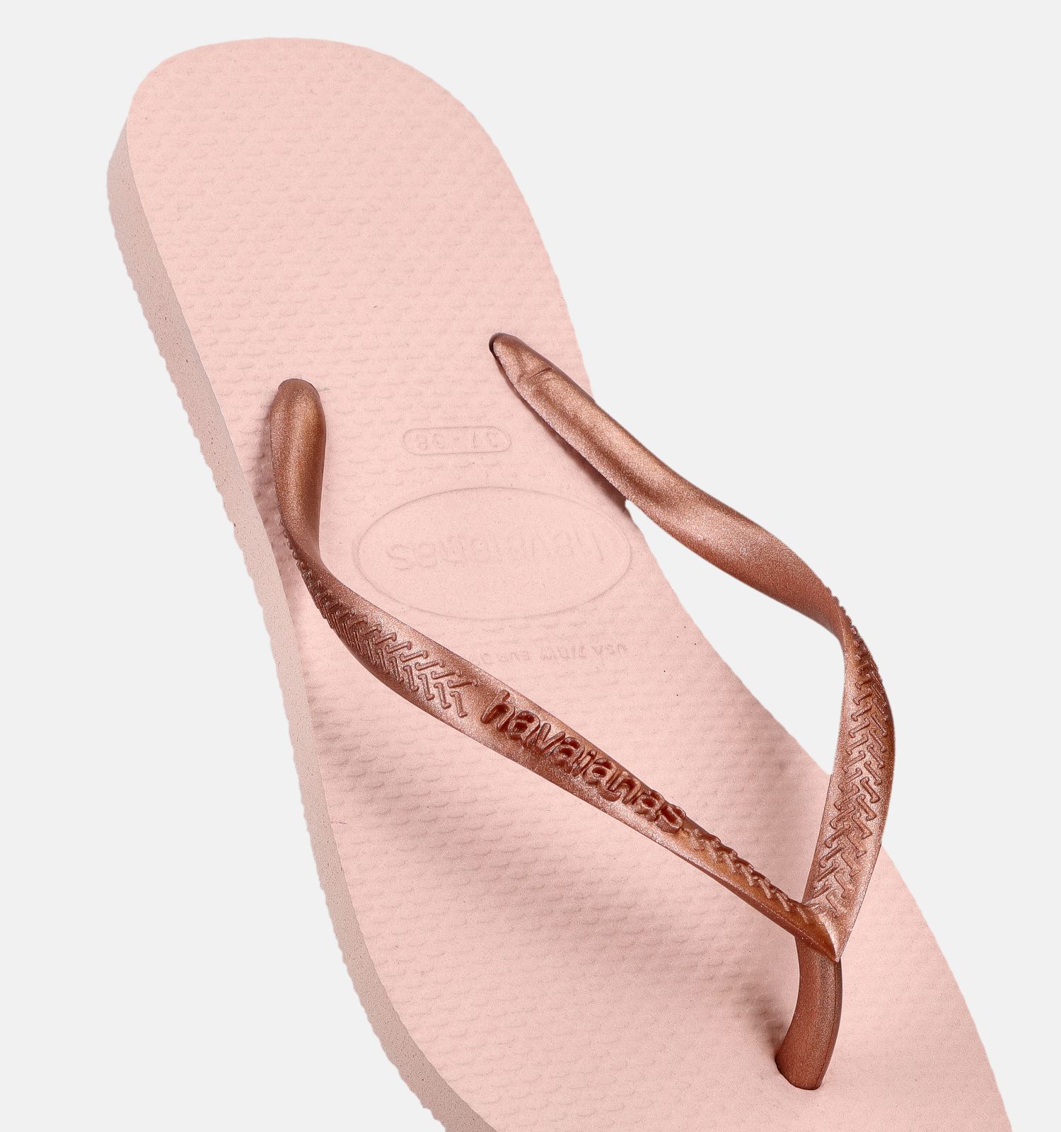 Deze teenslippers van Havaianas zijn vervaardigd uit kunststof, met een zachte afwerking van kunststof op de binnenzolen. Het extra lichte gewicht van deze Havaianas teenslippers voor dames verhoogt het wandelcomfort. Deze rose golden flip-flops scoren op alle vlakken vlot een 10/10!