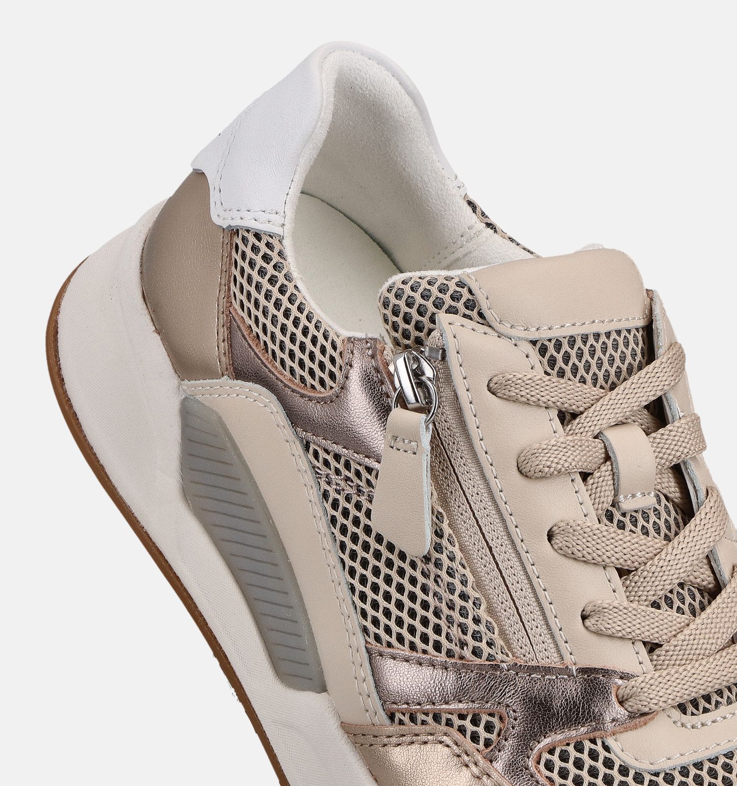 Gabor RollingSoft is een collectie van comfortmerk Gabor waarvan jouw voeten zullen houden! Door de RollingSoft-technologie rollen jouw voeten op een natuurlijke manier af, waardoor jouw voeten minder belast worden. Deze gouden Gabor sneakers zijn extra licht en flexibel, om verder stapcomfort te kunnen garanderen. Deze Gabor RollingSoft sneakers zijn daarnaast ook geschikt voor steunzolen, want de binnenzolen zijn uitneembaar. Dat is ook goed nieuws voor dames die geen orthopedische zolen dragen, want dit betekent dat je makkelijk de zolen eruit kan nemen om de sneakers te verluchten!