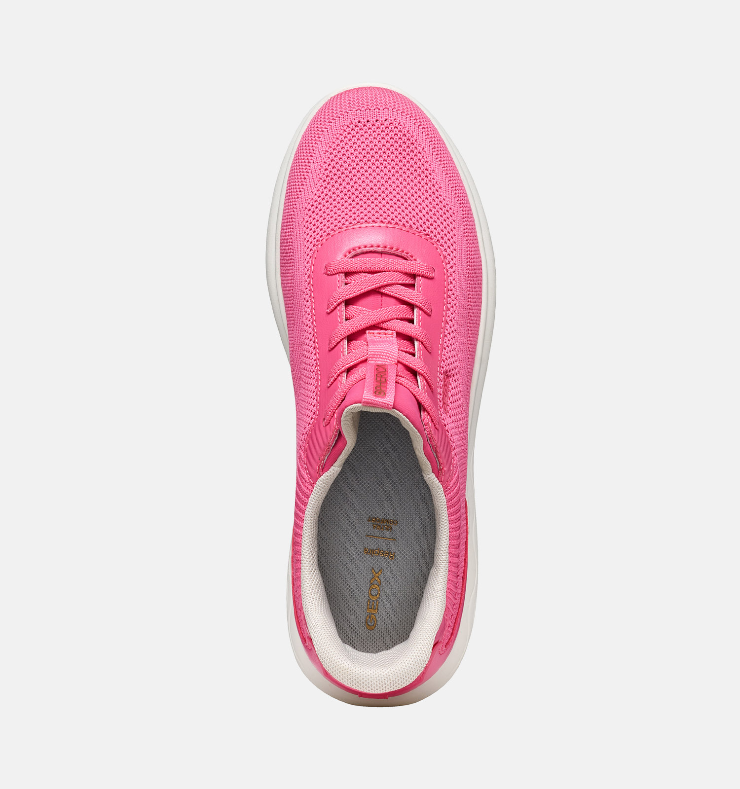 Deze roze sneakers maken deel uit van de nieuwe Spherica collectie van Geox! Geox Spherica damesschoenen zijn een echte innovatie in de schoenenwereld. Deze sneakers zijn ademend, ultralicht en hebben drukverlagende binnenzolen. De unieke pasvorm zorgt voor immens stapcomfort, dat verschil zal je voelbaar merken. Uiteraard hebben deze damessneakers ook de gepatenteerde Geox-zolen, waardoor zweet wordt afgevoerd via microgaatjes in de buitenzolen. Dat houdt damesvoeten de hele dag lang droog. Ervaar comfort zoals nooit te voren, met deze Geox Spherica sneakers voor dames!