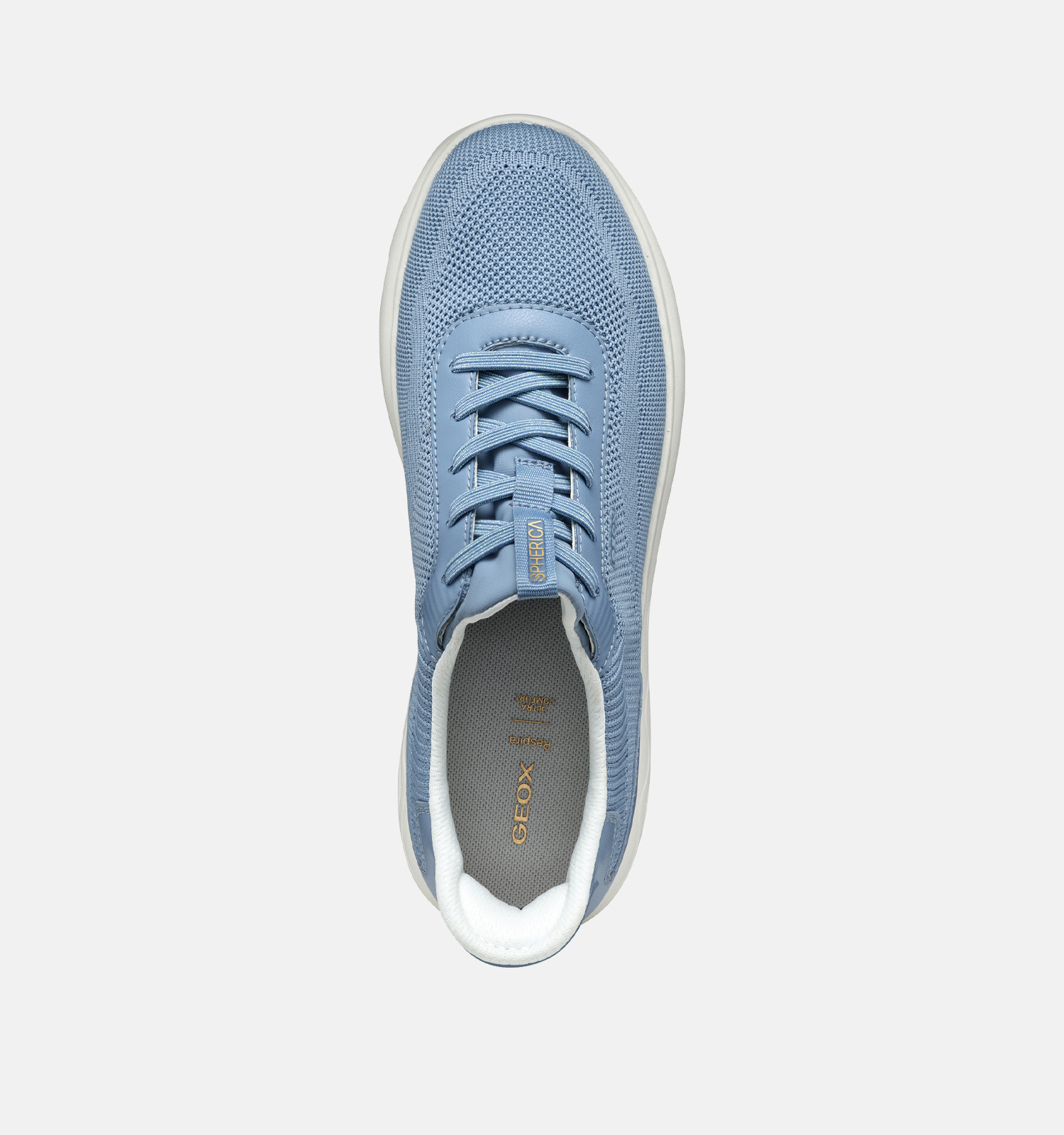 Deze blauwe sneakers maken deel uit van de nieuwe Spherica collectie van Geox! Geox Spherica damesschoenen zijn een echte innovatie in de schoenenwereld. Deze sneakers zijn ademend, ultralicht en hebben drukverlagende binnenzolen. De unieke pasvorm zorgt voor immens stapcomfort, dat verschil zal je voelbaar merken. Uiteraard hebben deze damessneakers ook de gepatenteerde Geox-zolen, waardoor zweet wordt afgevoerd via microgaatjes in de buitenzolen. Dat houdt damesvoeten de hele dag lang droog. Ervaar comfort zoals nooit te voren, met deze Geox Spherica sneakers voor dames!