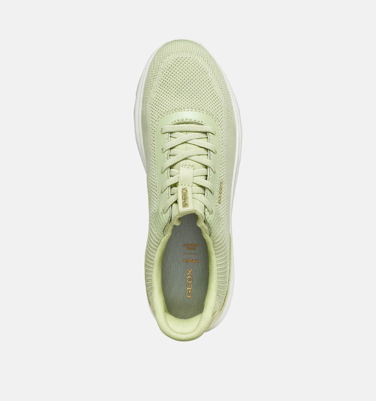Deze groene sneakers maken deel uit van de nieuwe Spherica collectie van Geox! Geox Spherica damesschoenen zijn een echte innovatie in de schoenenwereld. Deze sneakers zijn ademend, ultralicht en hebben drukverlagende binnenzolen. De unieke pasvorm zorgt voor immens stapcomfort, dat verschil zal je voelbaar merken. Uiteraard hebben deze damessneakers ook de gepatenteerde Geox-zolen, waardoor zweet wordt afgevoerd via microgaatjes in de buitenzolen. Dat houdt damesvoeten de hele dag lang droog. Ervaar comfort zoals nooit te voren, met deze Geox Spherica sneakers voor dames!