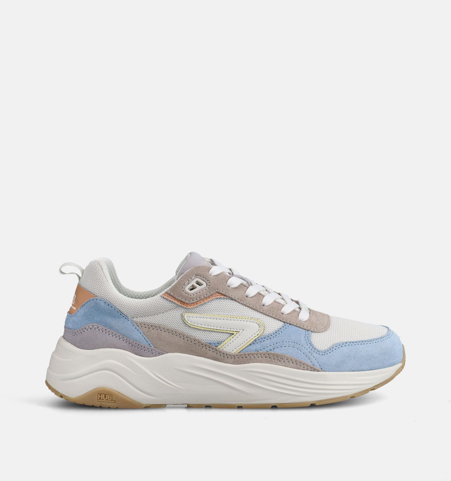 Hub heeft van deze multicoloured sneakers een echt fashion statement gemaakt, maar Hub is comfort zeker niet uit het oog verloren. Deze sneakers voor dames hebben een uitstekende pasvorm, met goede hiel- en voetenboogondersteuning. De onderzolen van deze colorblocking sneakers van Hub zijn ook iets dikker, wat voor betere schokdemping zorgt.
