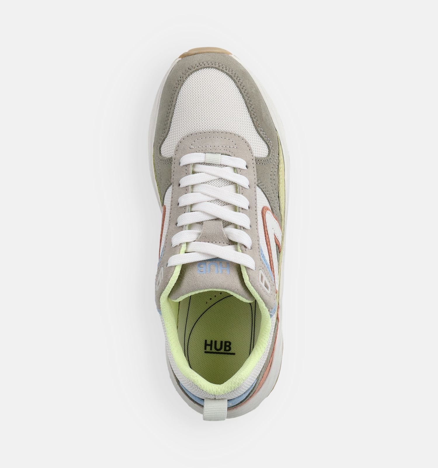 Hub heeft van deze multicoloured sneakers een echt fashion statement gemaakt, maar Hub is comfort zeker niet uit het oog verloren. Deze sneakers voor dames hebben een uitstekende pasvorm, met goede hiel- en voetenboogondersteuning. De onderzolen van deze colorblocking sneakers van Hub zijn ook iets dikker, wat voor betere schokdemping zorgt.