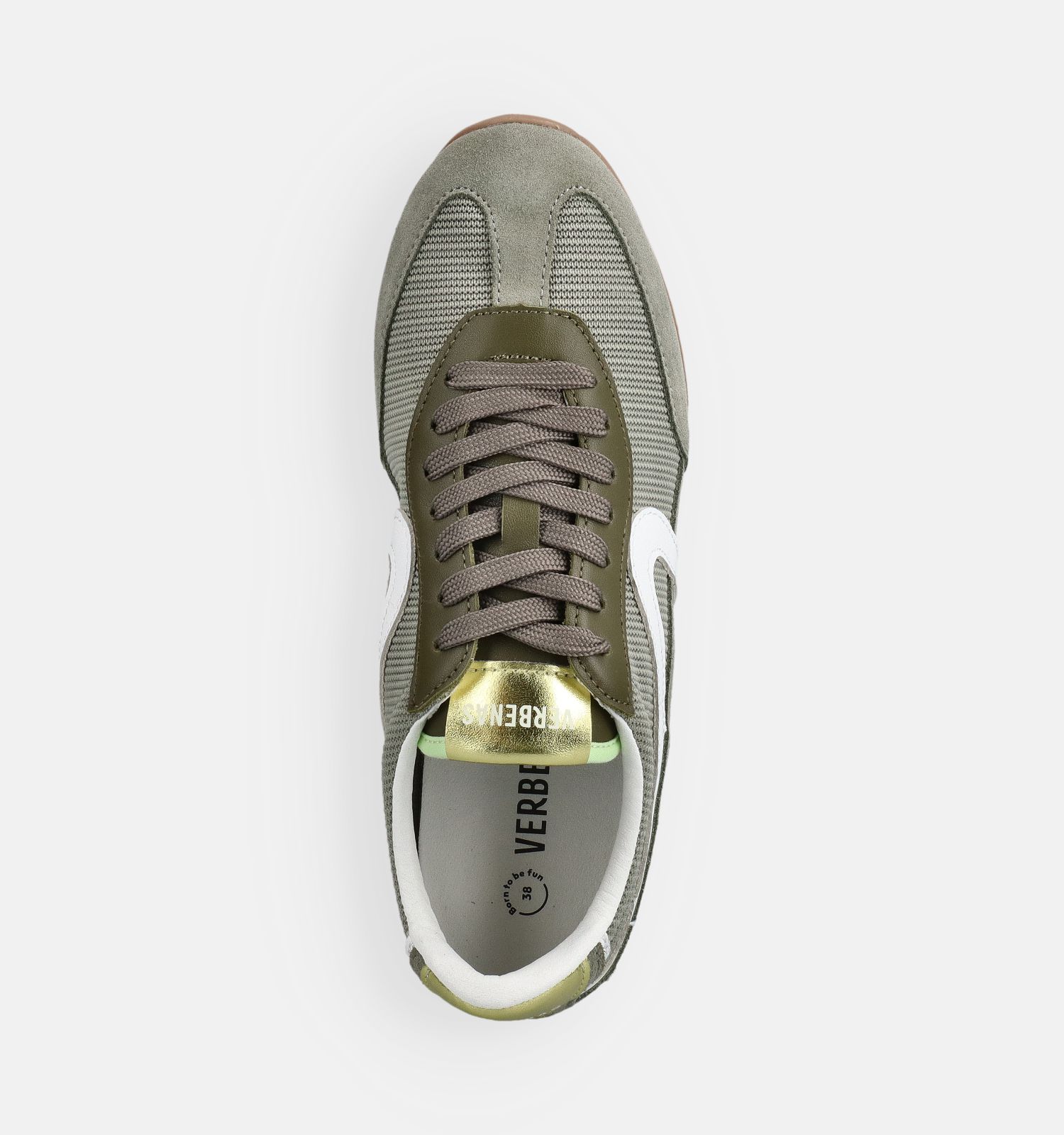 Dit groene model van het merk Verbenas is een fusie van een klassieke sportsneaker met een gekledere veterschoen. Een ideale mix! Op vlak van comfort voelen deze damessneakers als een sportschoen aan. Deze Verbenas sneakers zijn licht van gewicht, de pasvorm biedt optimale ondersteuning en stabiliteit, en de zolen zijn in zekere mate voorzien van schokdemping.