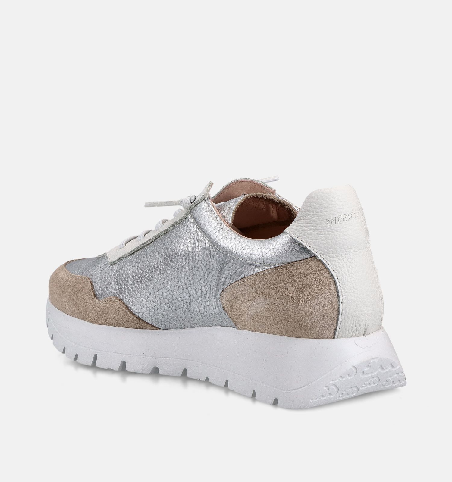 Deze zilveren sneakers van Wonders zijn een elegante twist op klassieke sneakers. Deze geklede sneakers hebben een fijner silhouet met vrouwelijke lijnen, vervaardigd uit kwalitatief leer, suède met binnenin ademend leer, stof.