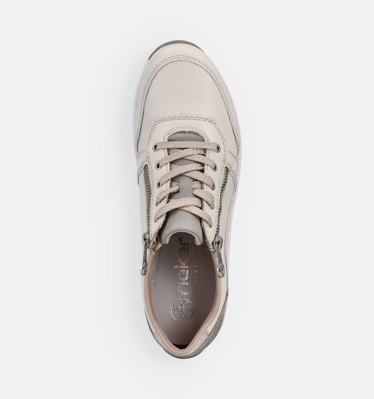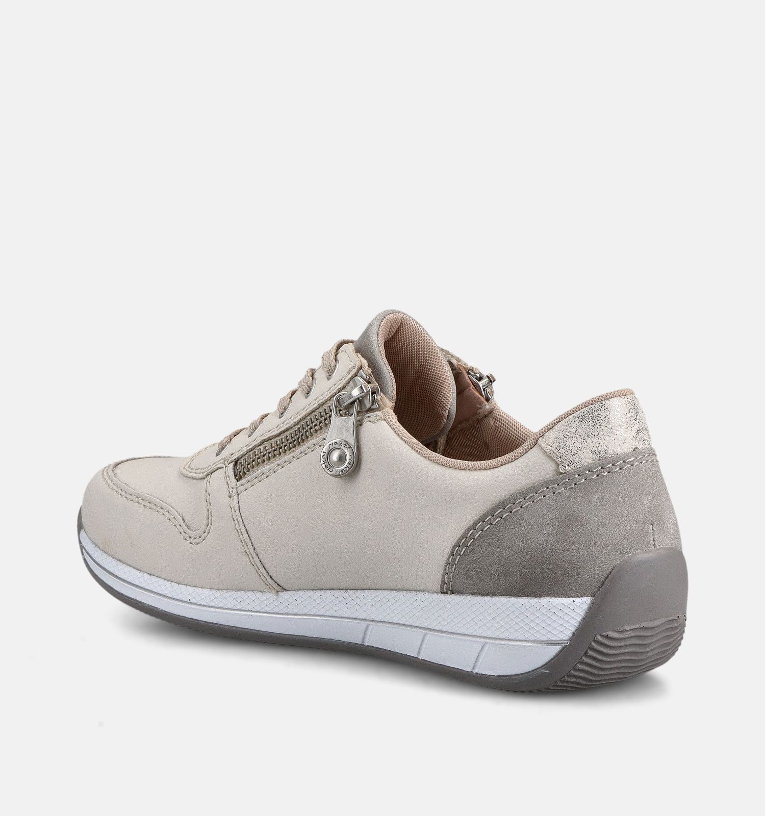 Deze sneakers in de kleur wit zijn vervaardigd uit sterk kunstleer, leer, met zacht stof aan de binnenkant. Deze materialen hebben een extra licht gewicht, een antidotum tegen dat herkenbare gevoel dat jouw voeten na een tijd zwaar beginnen aan te voelen. De ergonomische pasvorm van deze Rieker damessneakers houdt ook rekening met het feit dat alle voeten licht opzwellen tegen het einde van de dag. Zo ervaar je de hele dag door optimaal comfort! Deze Rieker sneakers voor dames hebben een rits & vetersluiting.