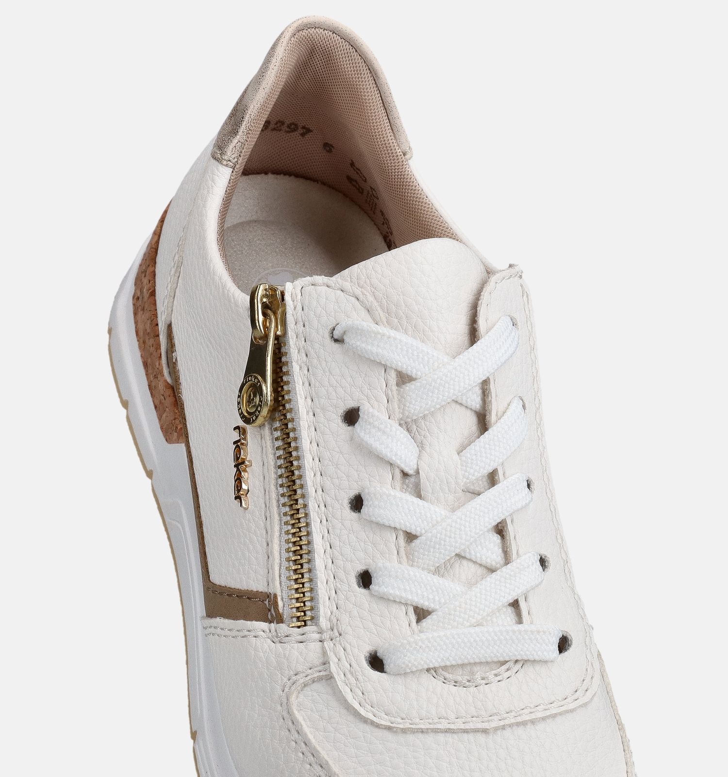 Deze sneakers in de kleur wit zijn vervaardigd uit sterk kunstleer, met zacht stof aan de binnenkant. Deze materialen hebben een extra licht gewicht, een antidotum tegen dat herkenbare gevoel dat jouw voeten na een tijd zwaar beginnen aan te voelen. De ergonomische pasvorm van deze Rieker damessneakers houdt ook rekening met het feit dat alle voeten licht opzwellen tegen het einde van de dag. Zo ervaar je de hele dag door optimaal comfort! Deze Rieker sneakers voor dames hebben een rits & vetersluiting.