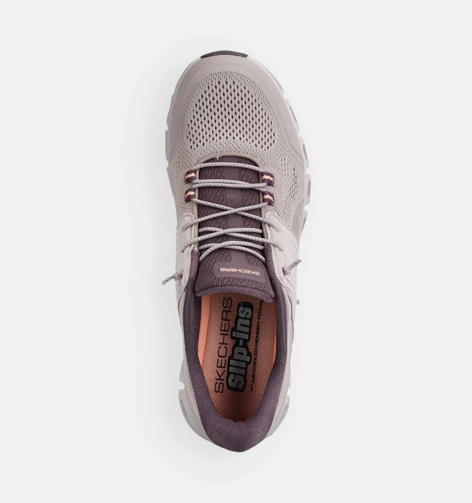 Belangrijk om te weten naar onderhoud toe: deze Skechers sneakers voor dames zijn vervaardigd uit stof binnenin, met versterkt stof aan de buitenkant. Dit taupe exemplaar heeft een elastieksluiting.