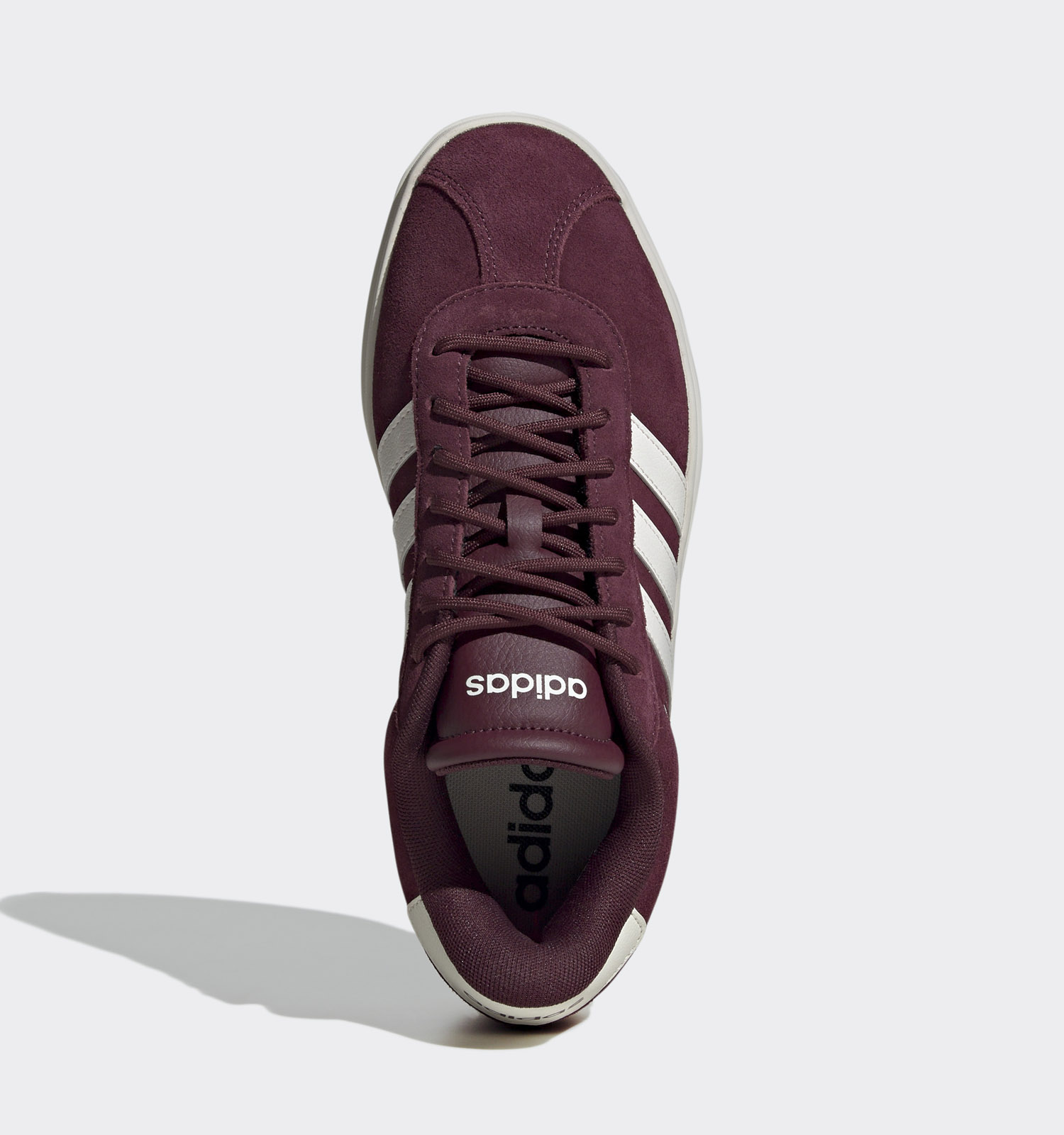 De sportschoenpasvorm van deze bordeaux sneakers biedt jouw voeten optimale ondersteuning en stabiliteit. Dit adidas Court, VL Court Bold model is licht qua gewicht, wat extra stapcomfort geeft. Deze adidas sneakers voor dames hebben een vetersluiting. Hou de bordeaux kleur mooi door deze adidas schoenen regelmatig te behandelen met een onderhoudsproduct geschikt voor suède.