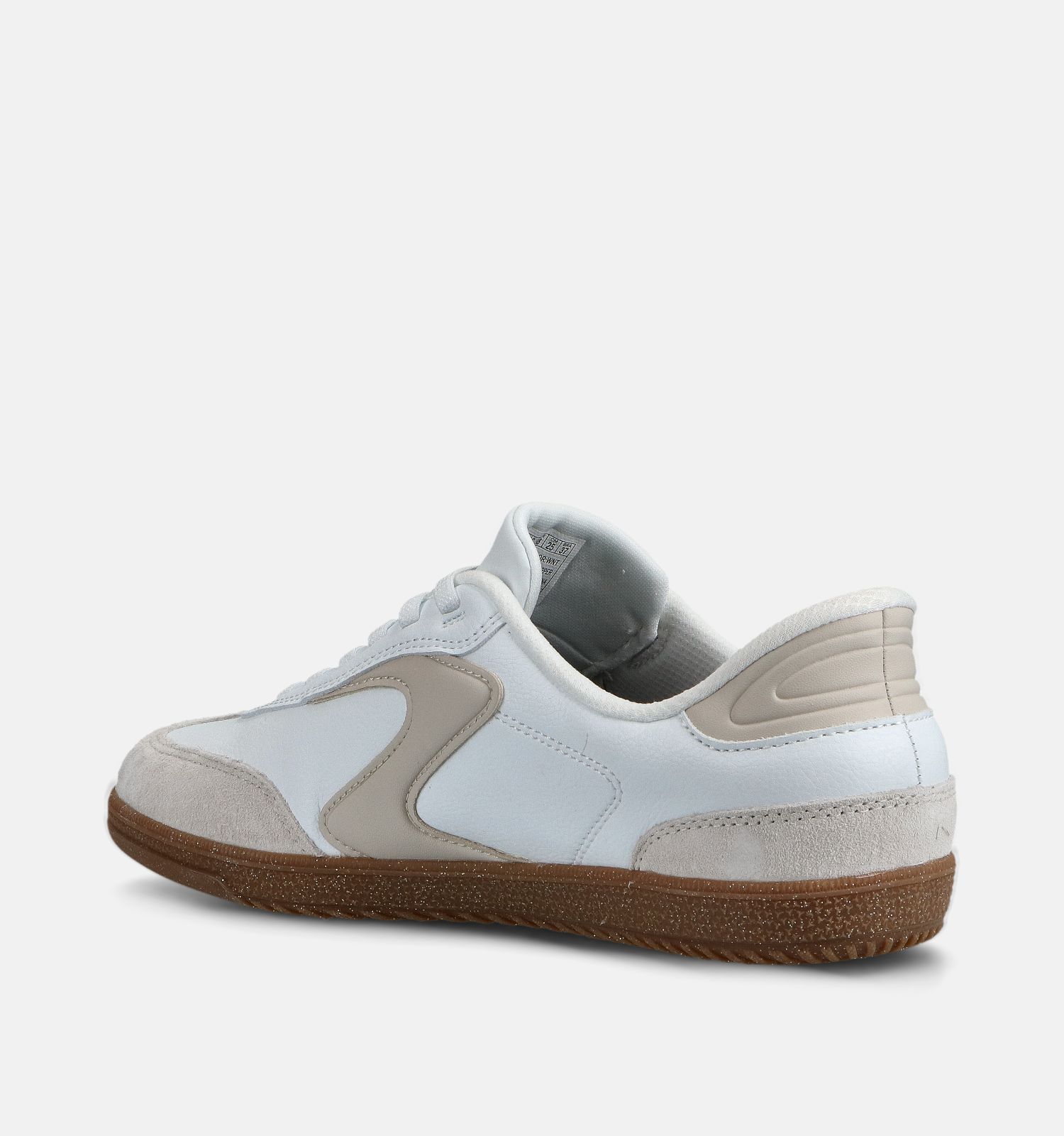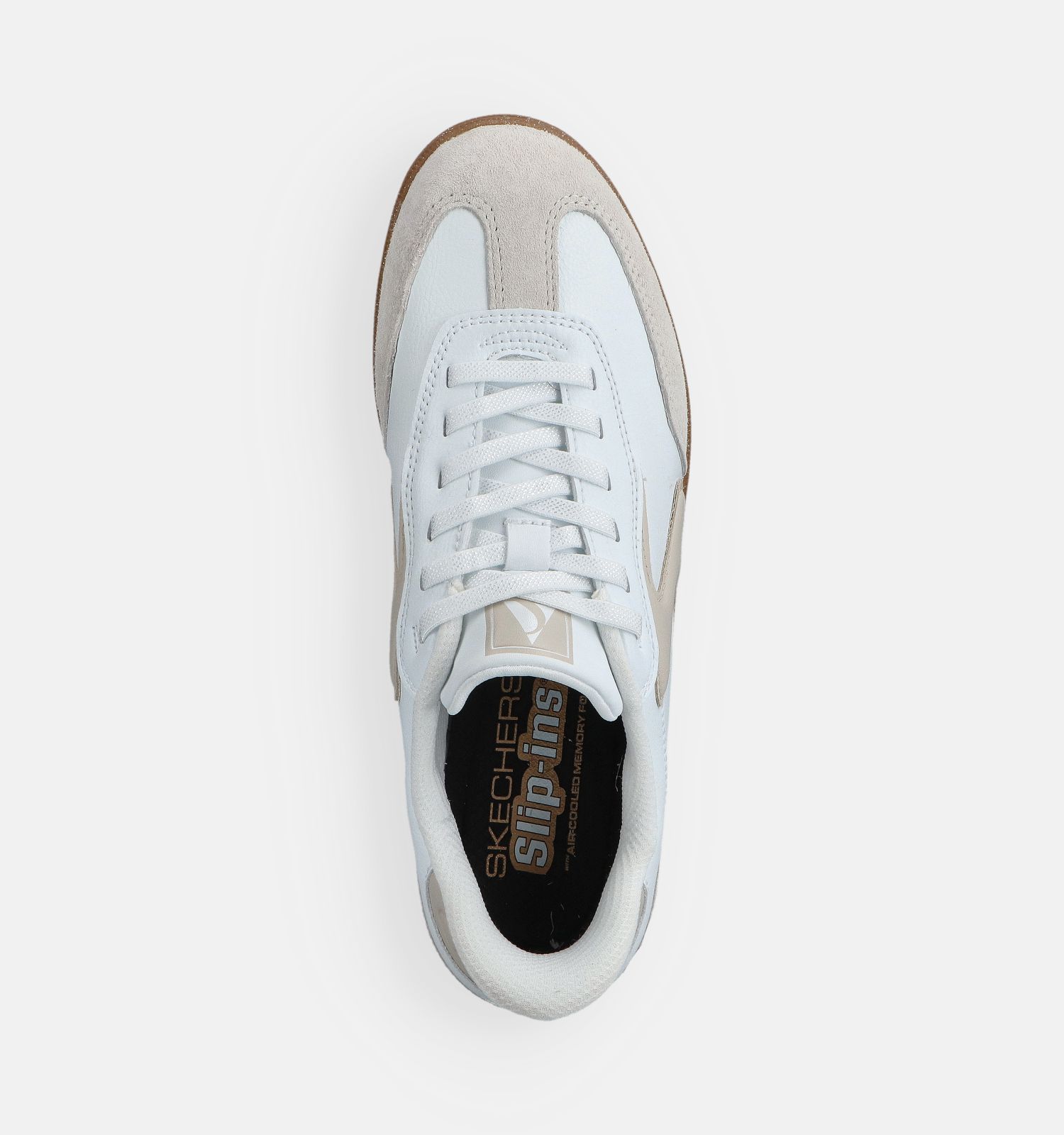 Belangrijk om te weten naar onderhoud toe: deze Skechers sneakers voor dames zijn vervaardigd uit stof binnenin, met versterkt kunstleer aan de buitenkant. Dit witte exemplaar heeft een elastieksluiting.