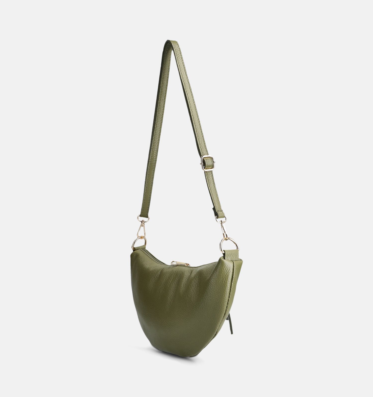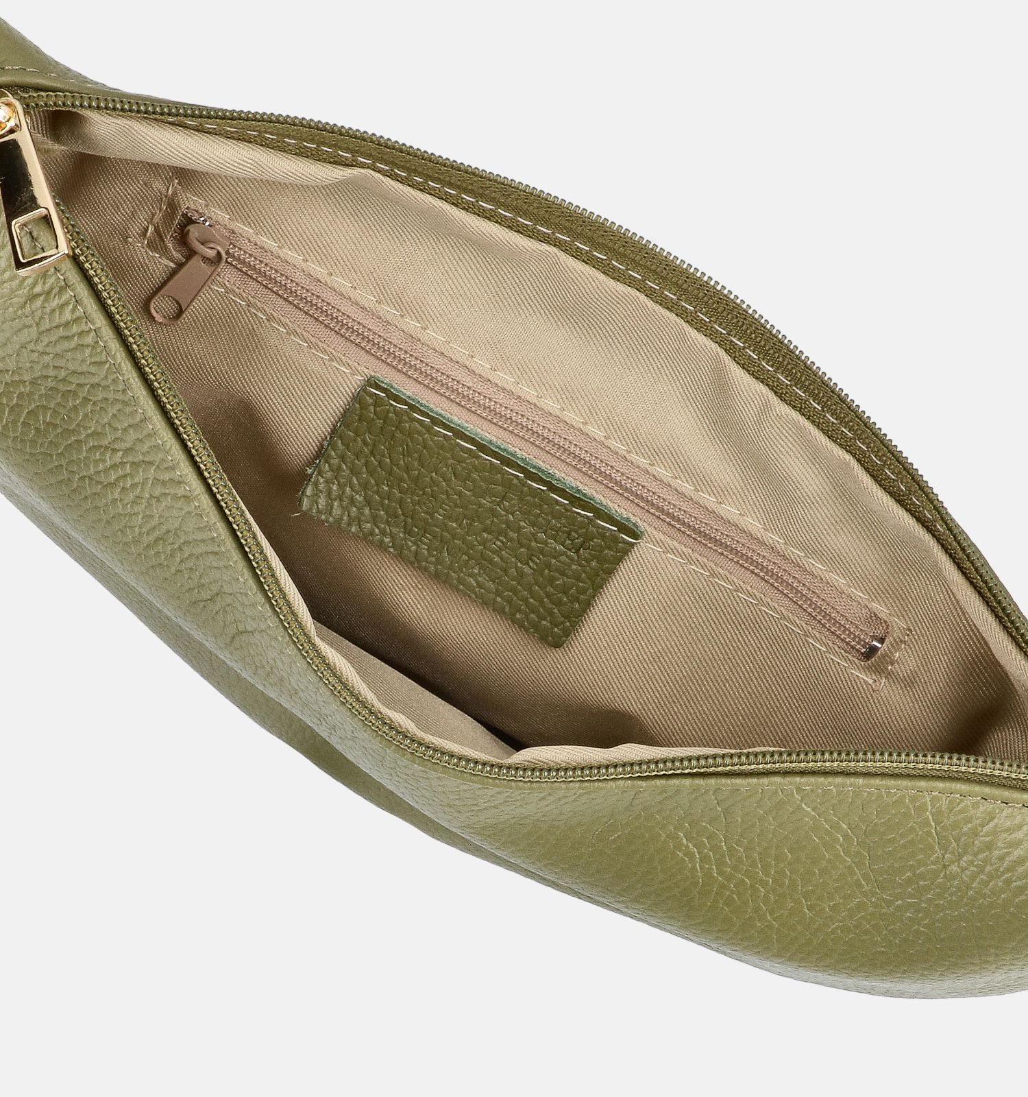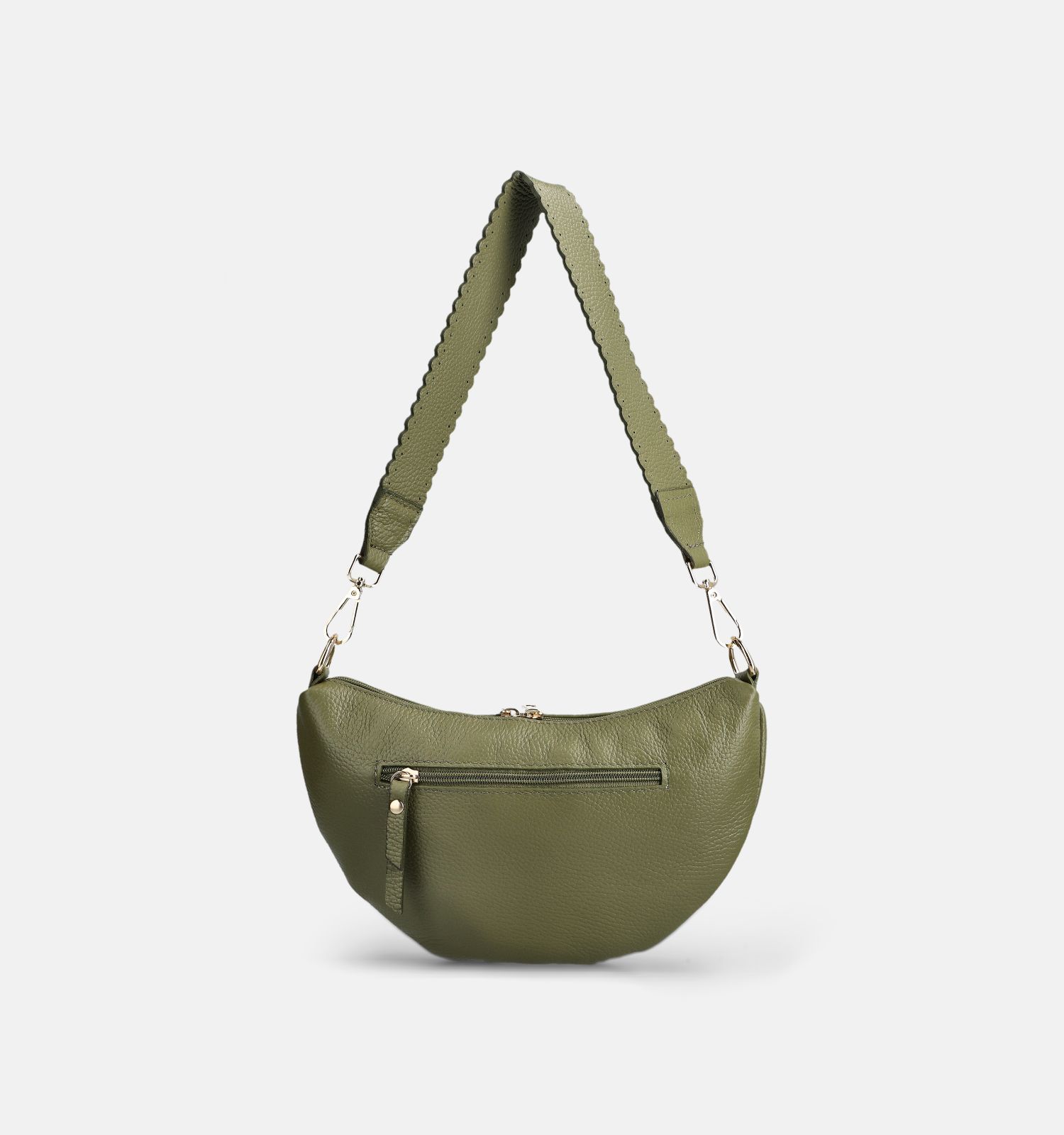 Je bent helemaal on trend met deze Via Limone tas! Dit model is redelijk nieuw in het modelandschap maar al een echte favoriet. Deze groene tas heeft de vorm van een heuptas maar kan enkel schuin over het lichaam worden gedragen, zoals een crossbody. Het grote verschil met gewone heuptassen is dat je deze riem perfect op jouw maat kan afstellen. De riem is een stuk langer, waardoor je zelf kan bepalen hoe los of strak je de heuptas tegen jou aan wil. Dit groene exemplaar van topmerk Via Limone kan niet ontbreken in jouw trendy tassencollectie!