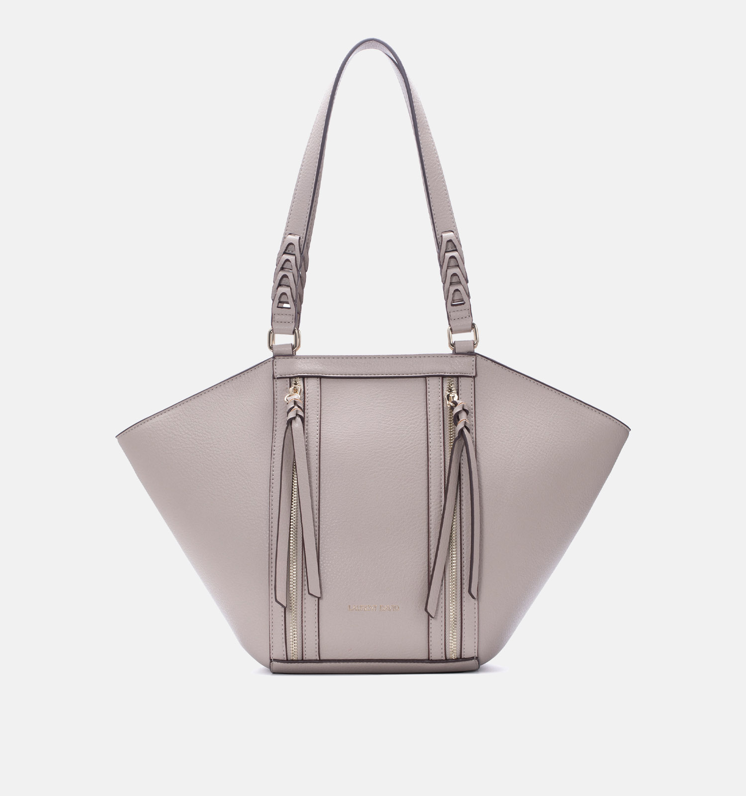Een handtas moet vooral twee zaken zijn: functioneel en esthetisch mooi. Laurent David toont jou graag dit schoolvoorbeeld. Deze taupe handtas is, door de grootte van 46 cm op 15 cm op 27 cm, een eerder ruim exemplaar. Perfect voor iedereen die graag goed voorbereid de deur uit gaat! Er is plek voor alle extraatjes die je maar wil meenemen, zoals bv. een zonnebril, wat snacks en/of een kleine paraplu.