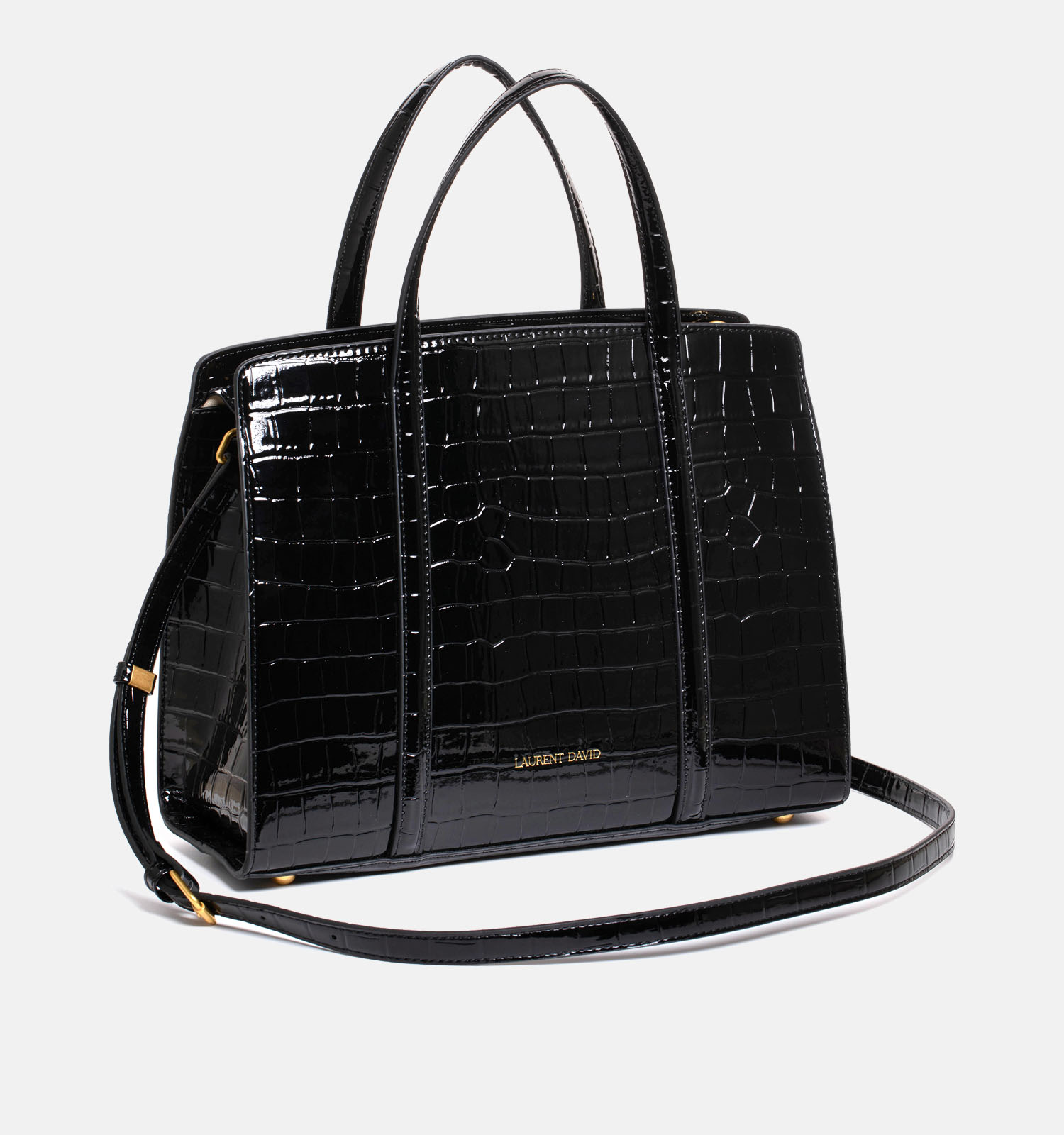 Een handtas moet vooral twee zaken zijn: functioneel en esthetisch mooi. Laurent David toont jou graag dit schoolvoorbeeld. Deze zwarte handtas is, door de grootte van 30 cm op 12 cm op 23 cm, een eerder ruim exemplaar. Perfect voor iedereen die graag goed voorbereid de deur uit gaat! Er is plek voor alle extraatjes die je maar wil meenemen, zoals bv. een zonnebril, wat snacks en/of een kleine paraplu.