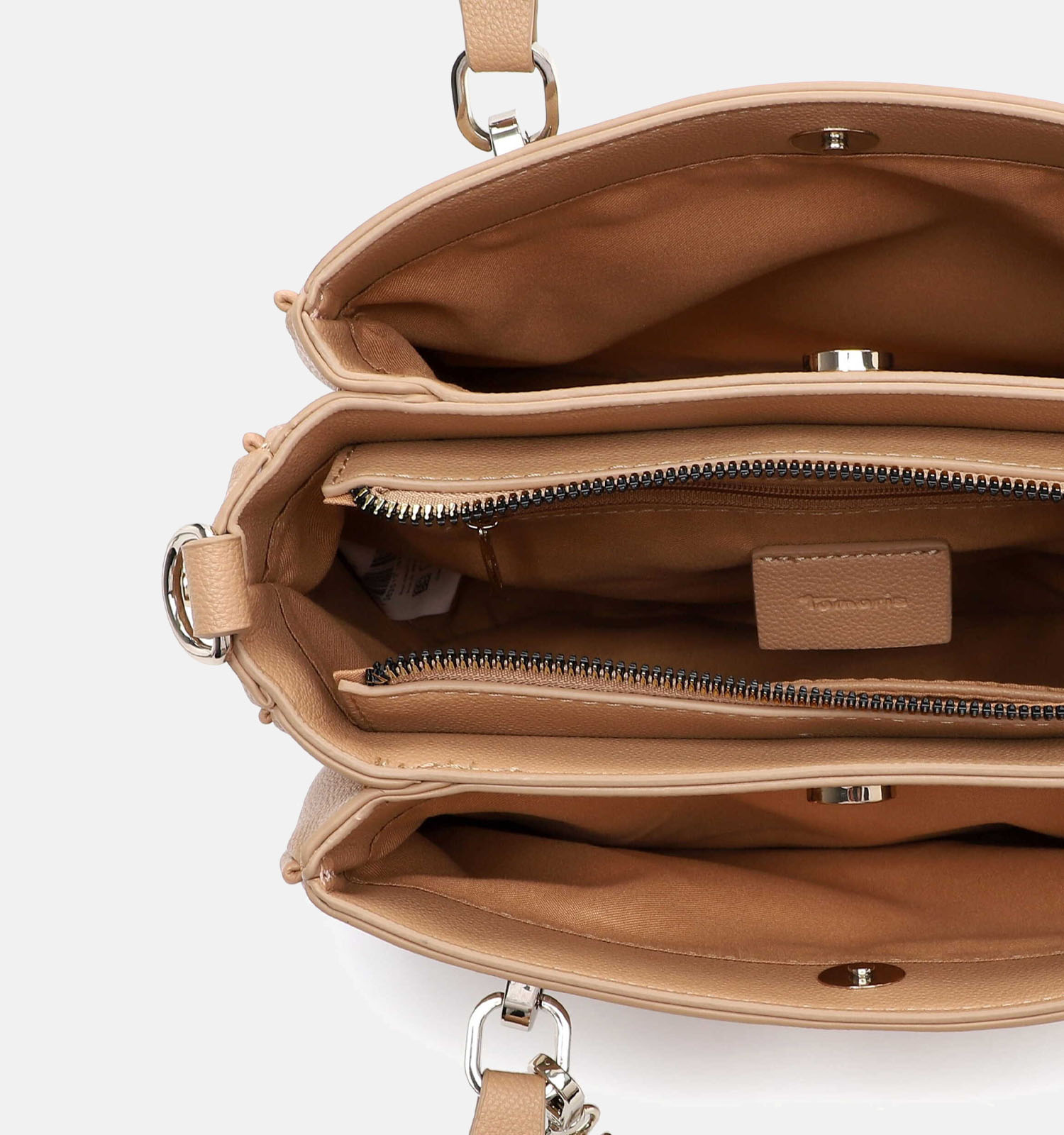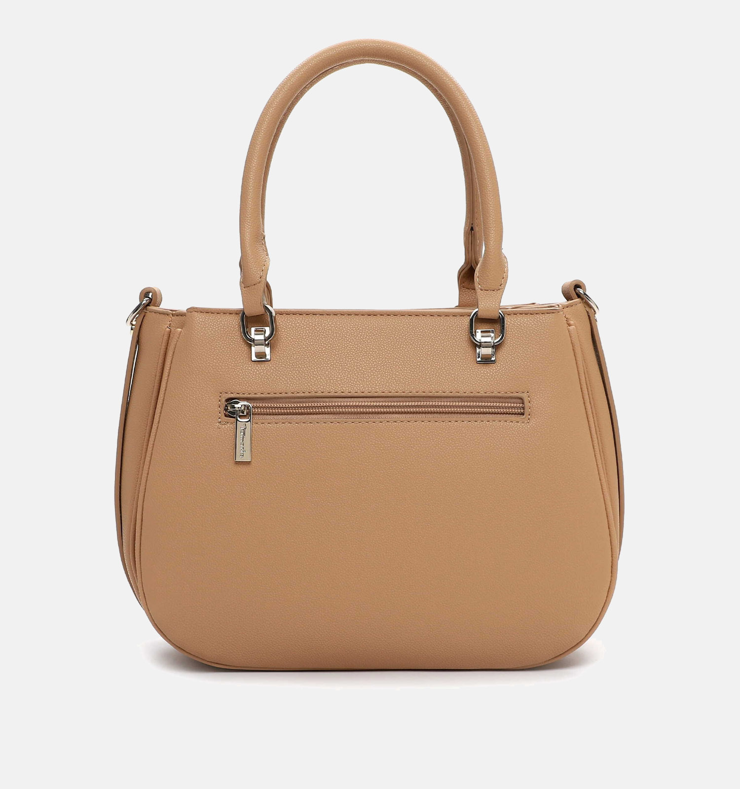 Een handtas moet vooral twee zaken zijn: functioneel en esthetisch mooi. Tamaris toont jou graag dit schoolvoorbeeld. Deze bruine handtas is, door de grootte van 28 cm op 8 cm op 22 cm, een eerder ruim exemplaar. Perfect voor iedereen die graag goed voorbereid de deur uit gaat! Er is plek voor alle extraatjes die je maar wil meenemen, zoals bv. een zonnebril, wat snacks en/of een kleine paraplu.