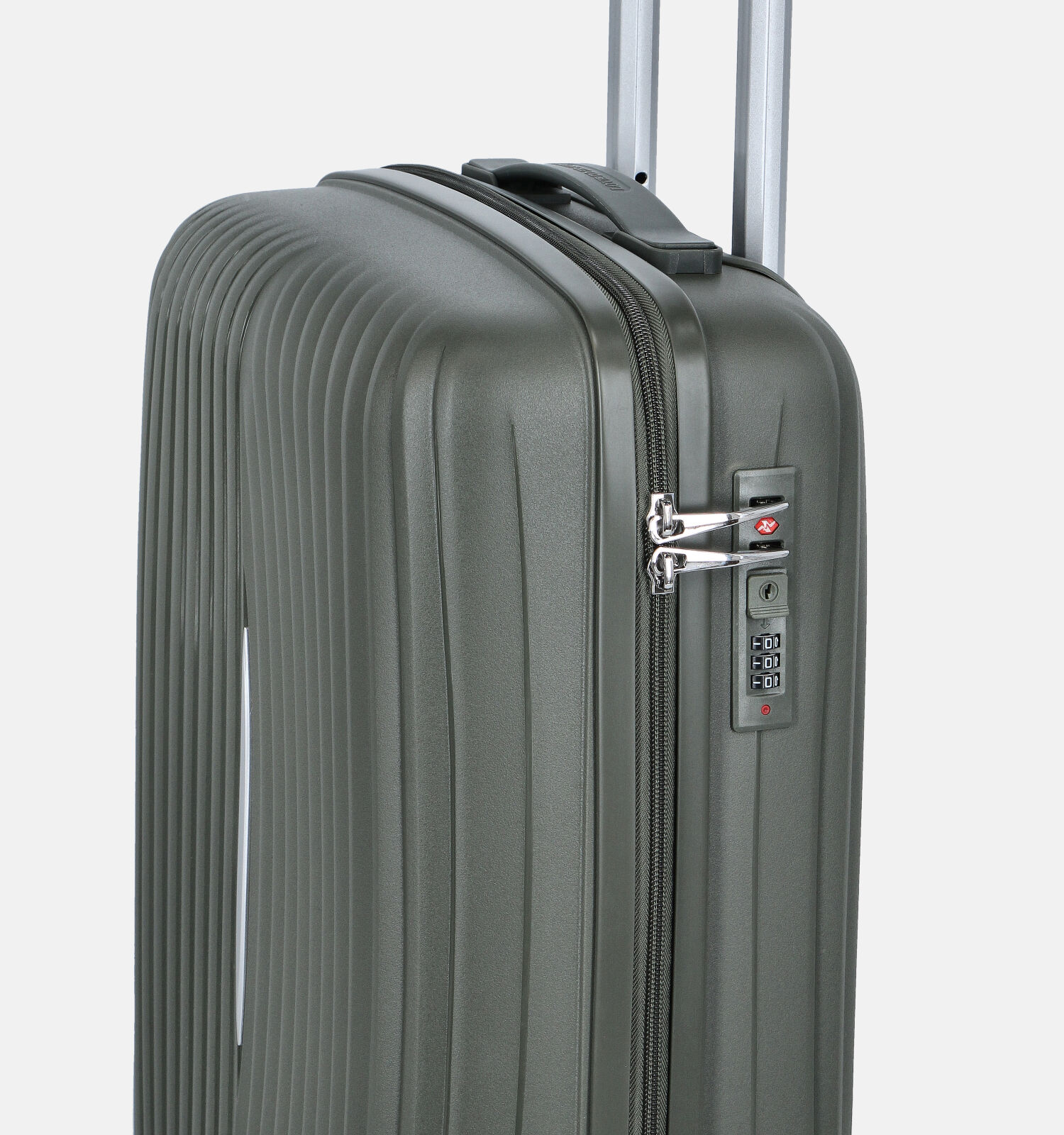 Deze kaki reiskoffer is de ideale keuze voor een weekendje weg, zakenreizen, korte citytrips en trein- en busreizen.