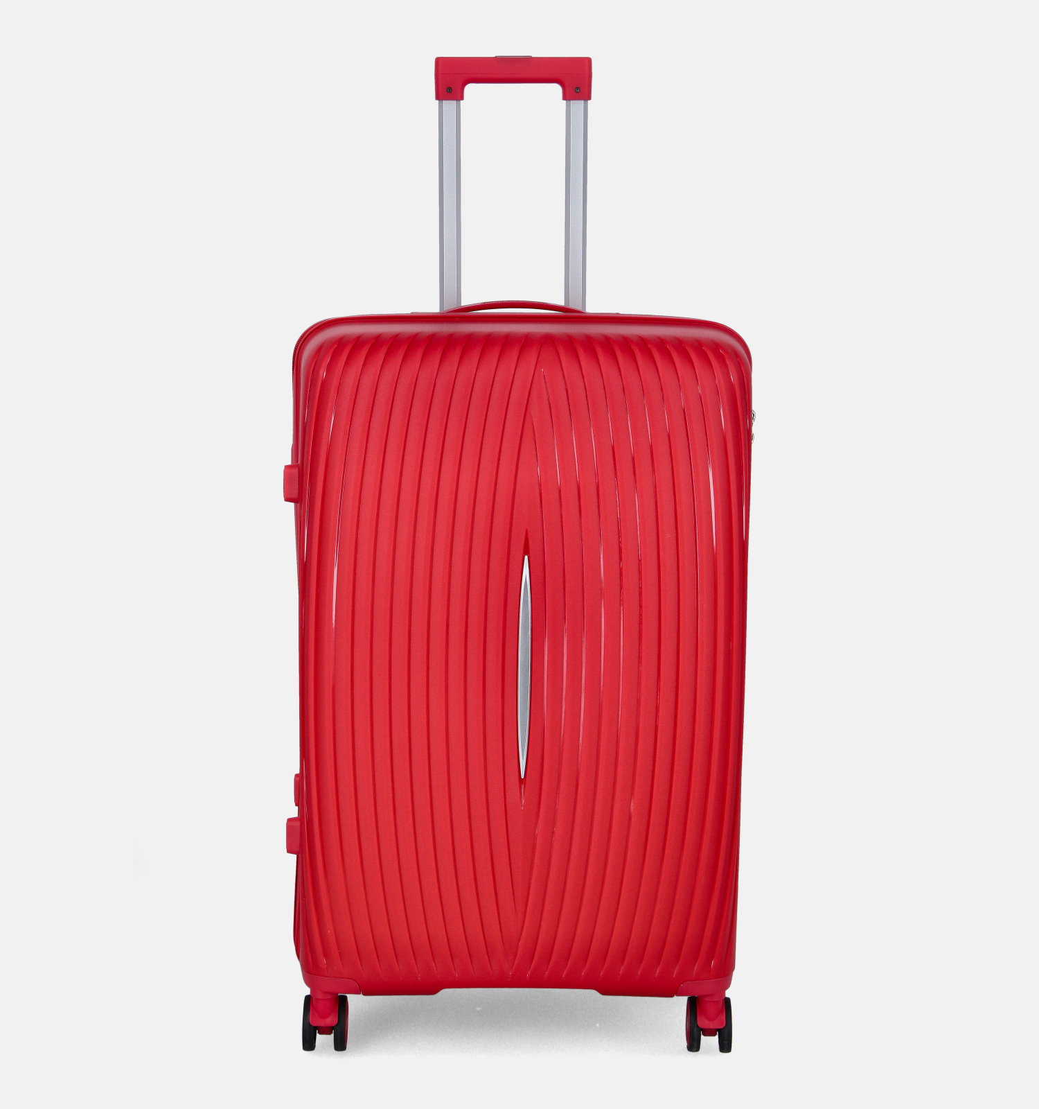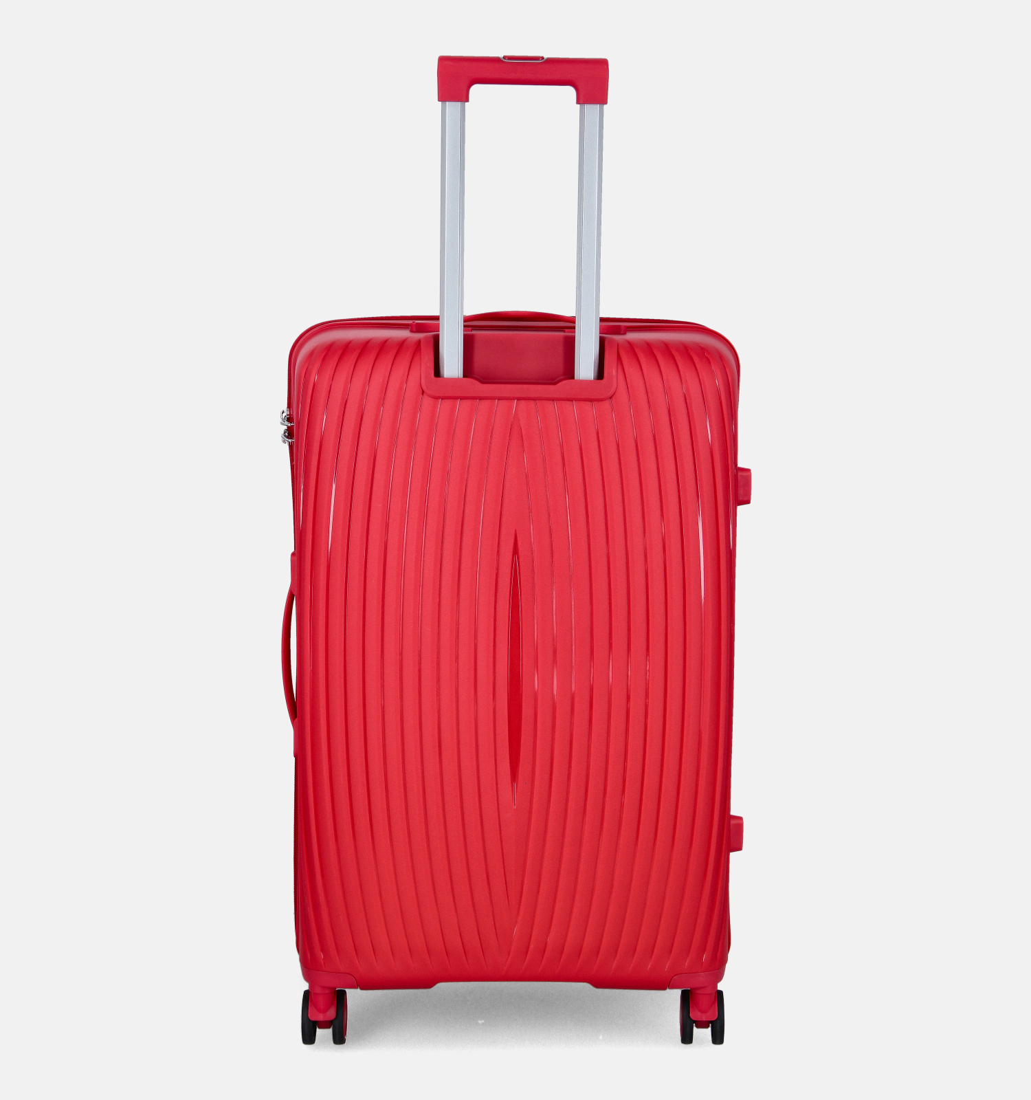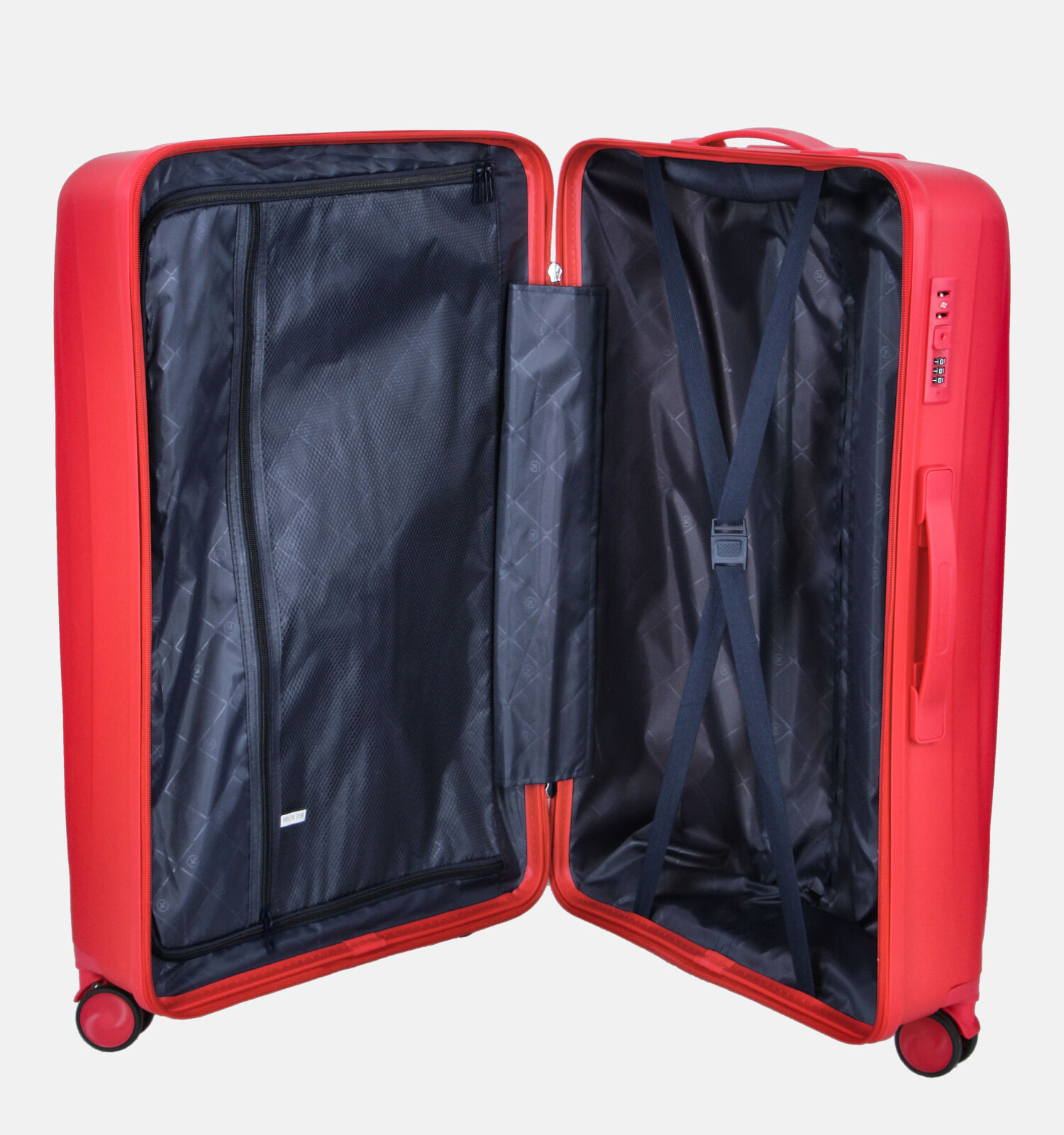 Deze rode reiskoffer is ideaal voor reizen van meer dan tien dagen of voor kortere trips waarbij je inpakt voor twee personen. De afmetingen van deze Love To Travel koffer zijn 75 cm x 45 cm x 28 cm. Dit rode exemplaar is sterk genoeg om tot 32 kg veilig mee te nemen.