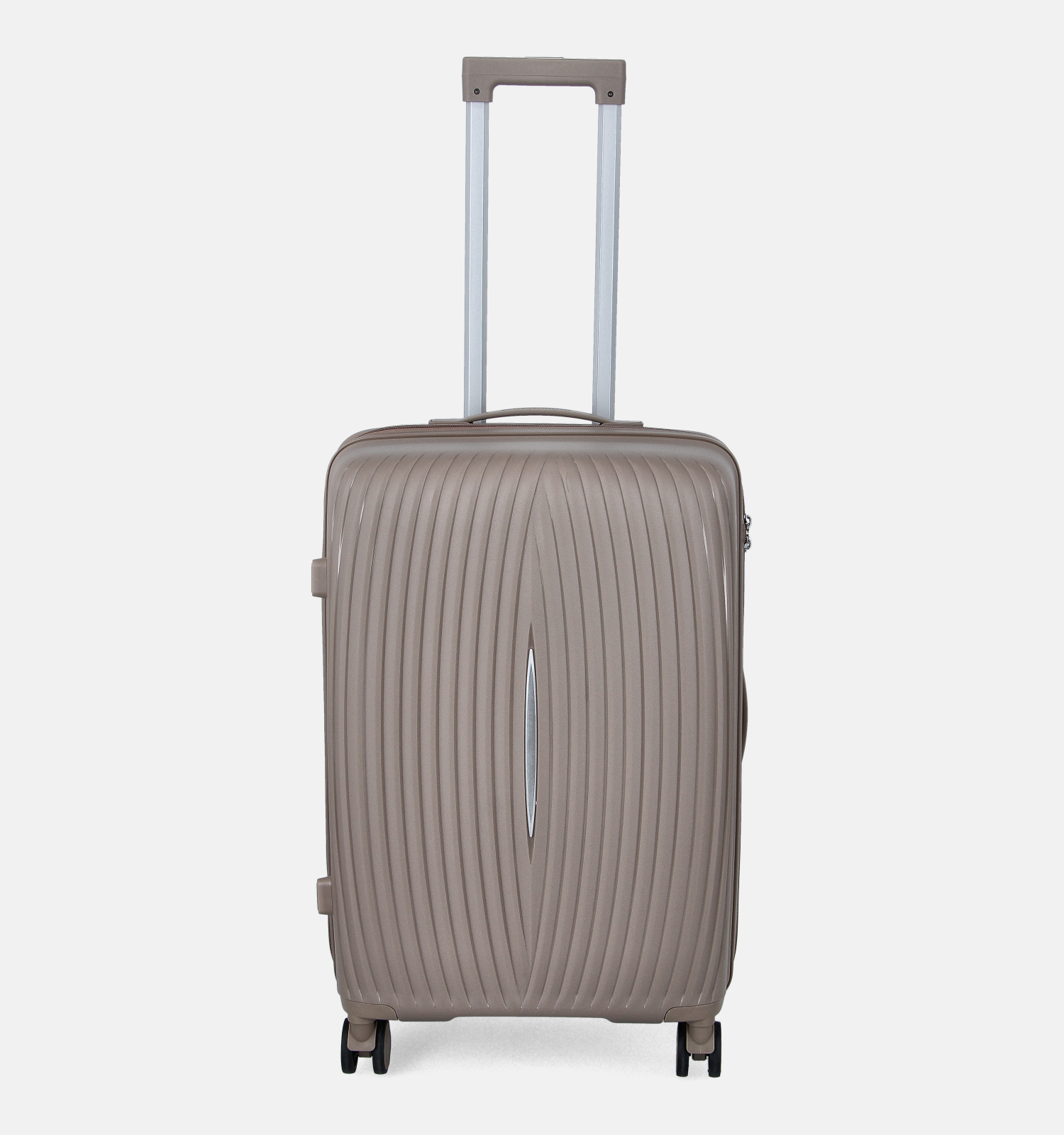 Deze taupe Love To Travel valies is gemaakt van polypropyleen: een sterk materiaal dat licht van gewicht is. Het is bovendien weerbestendig, onderhoudsvriendelijk en bestand tegen stoten en schokken.