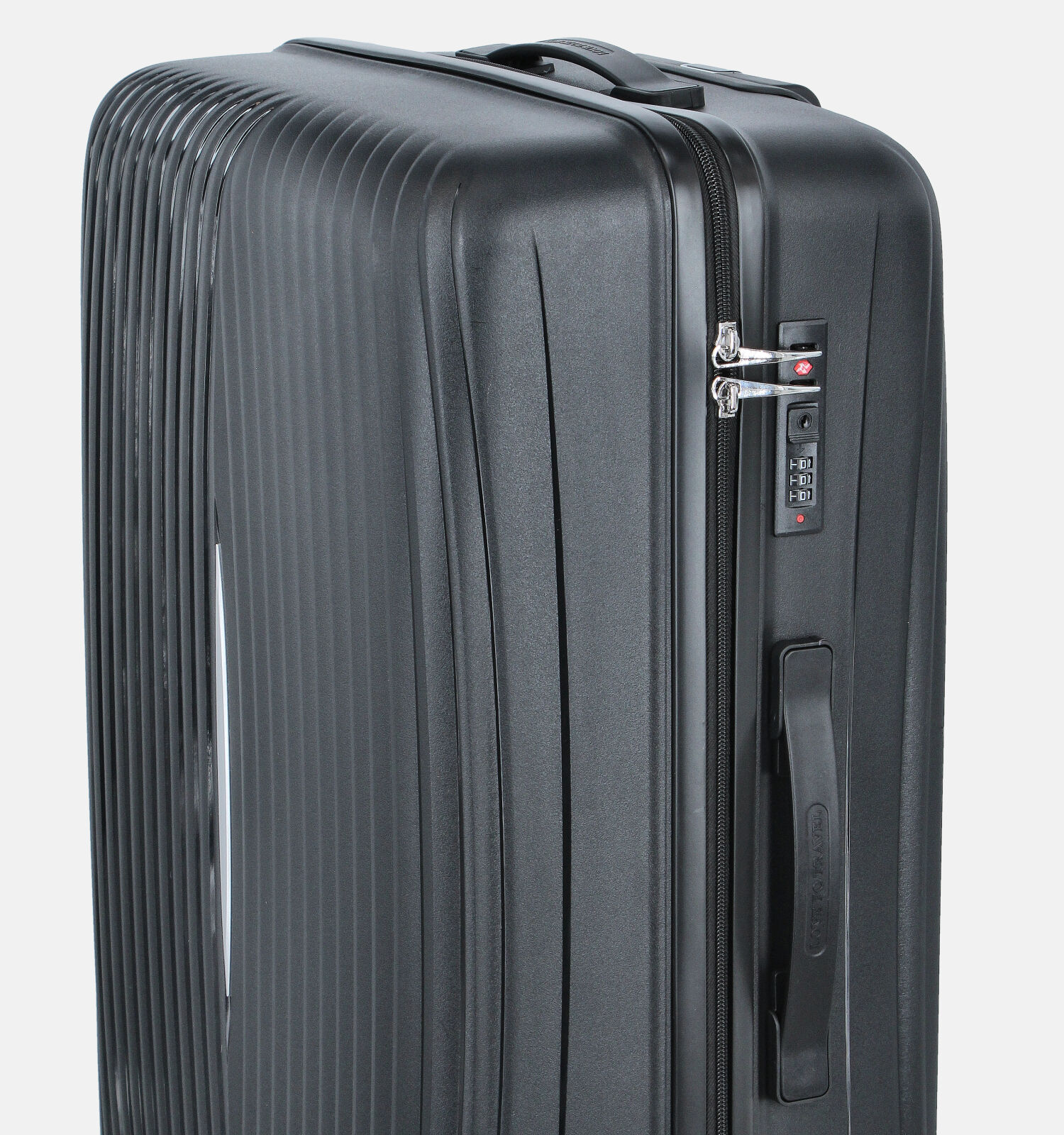 Deze zwarte Love To Travel valies is gemaakt van polypropyleen: een sterk materiaal dat licht van gewicht is. Het is bovendien weerbestendig, onderhoudsvriendelijk en bestand tegen stoten en schokken.