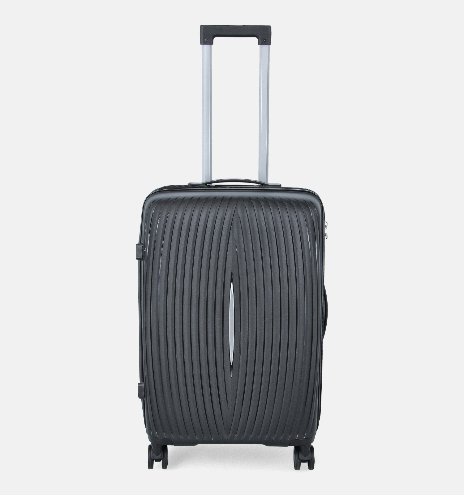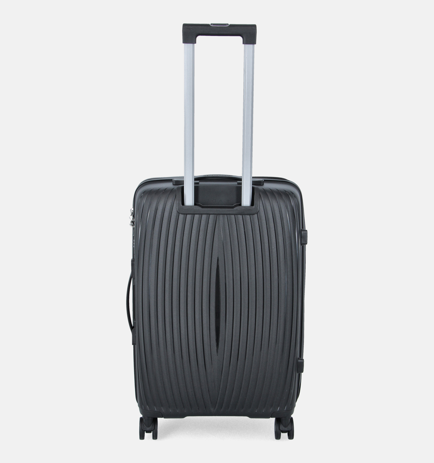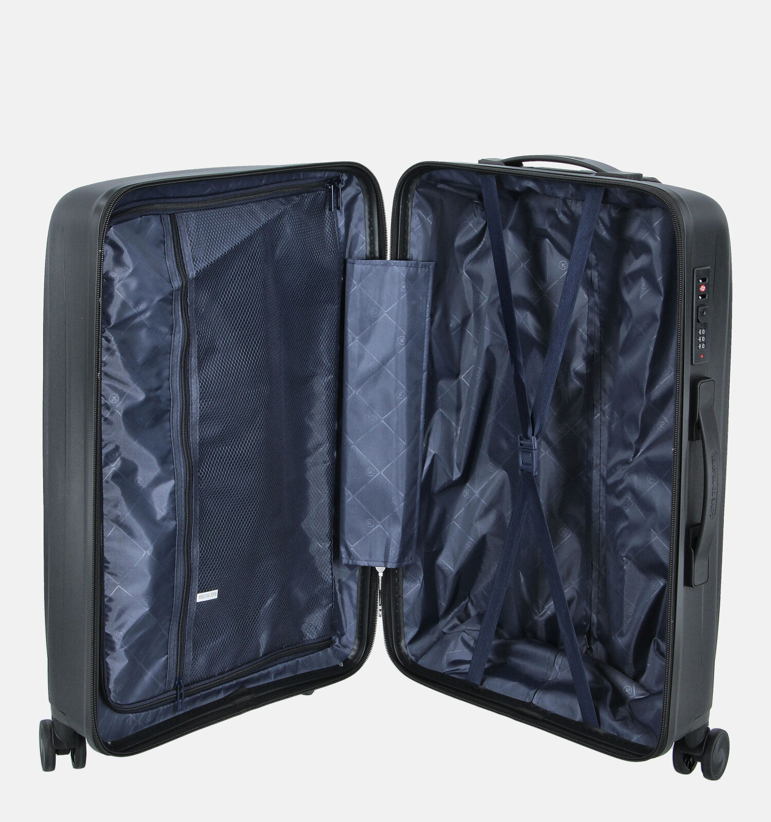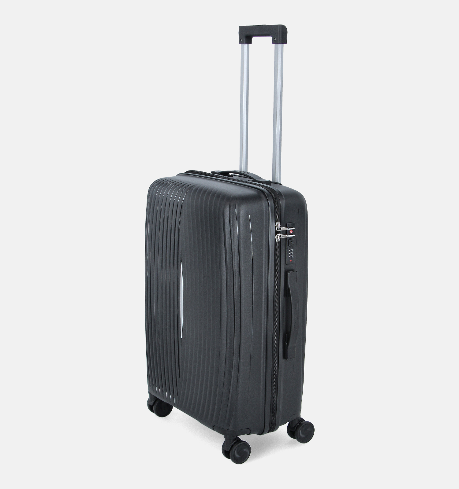 Deze medium koffer is voorzien van vier versterkte wielen, een ritssluiting, een vast handvat en een telescopische handgreep die in- en uitschuifbaar is.