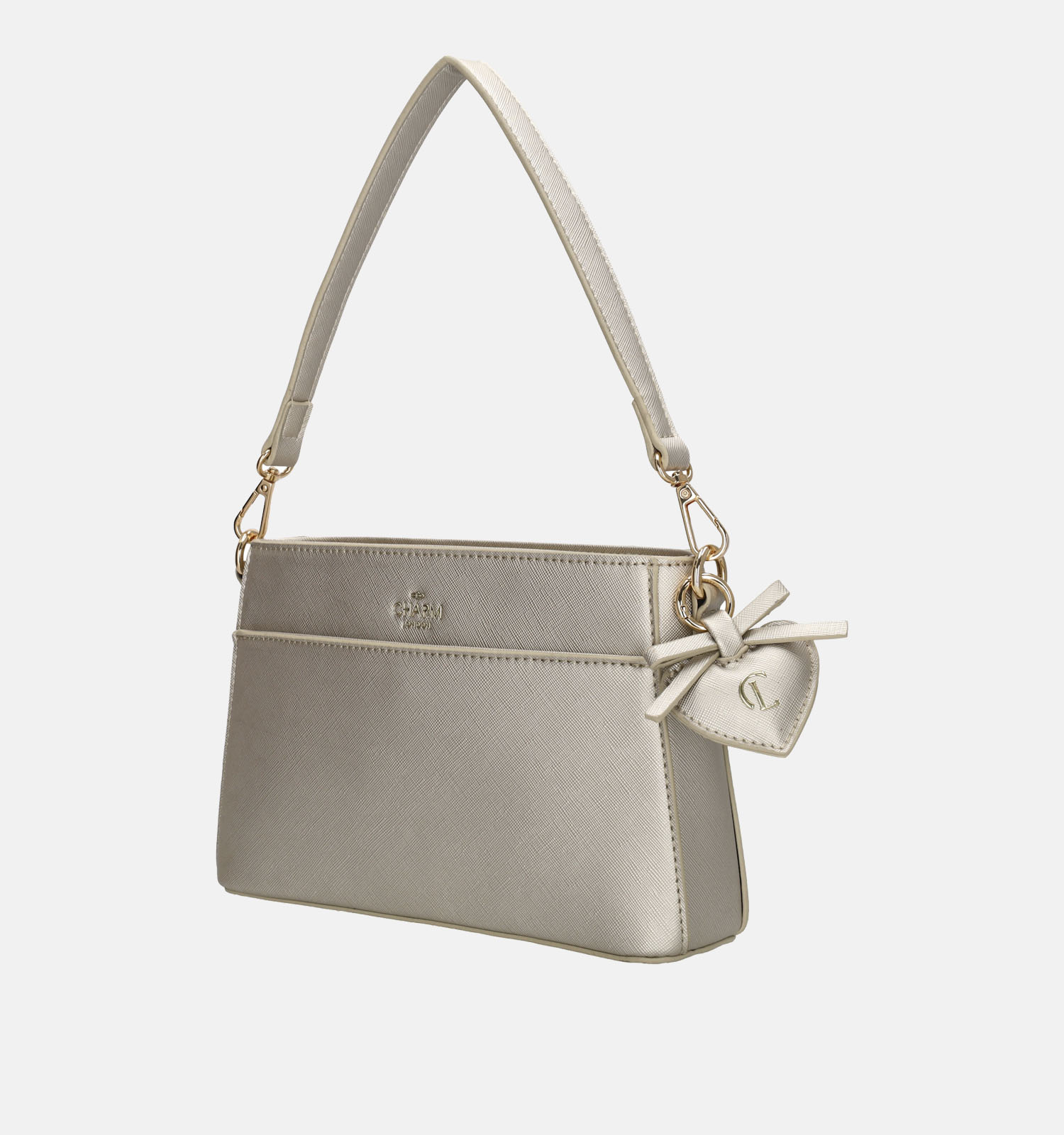 Deze gouden schoudertas van Charm London is vervaardigd uit stevige materialen (zoals ) zodat de inhoud van de tas veilig opgeborgen blijft. Met als afmetingen 25 cm x 6 cm x 15 cm heeft deze tas bovendien de perfecte middelmaat!