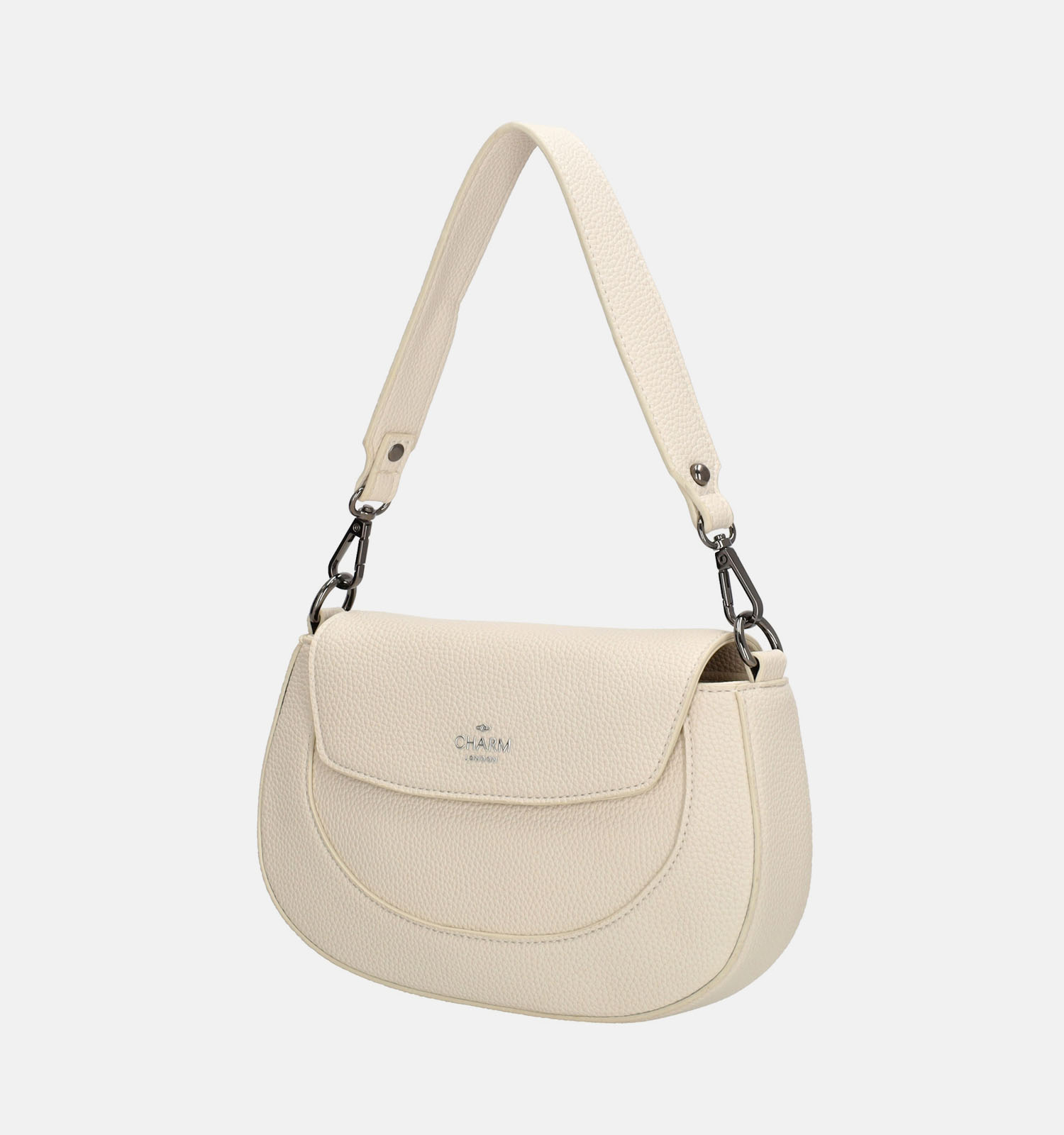 Deze witte schoudertas van Charm London is vervaardigd uit stevige materialen (zoals ) zodat de inhoud van de tas veilig opgeborgen blijft. Met als afmetingen 23 cm x 4,5 cm x 13,5 cm heeft deze tas bovendien de perfecte middelmaat!