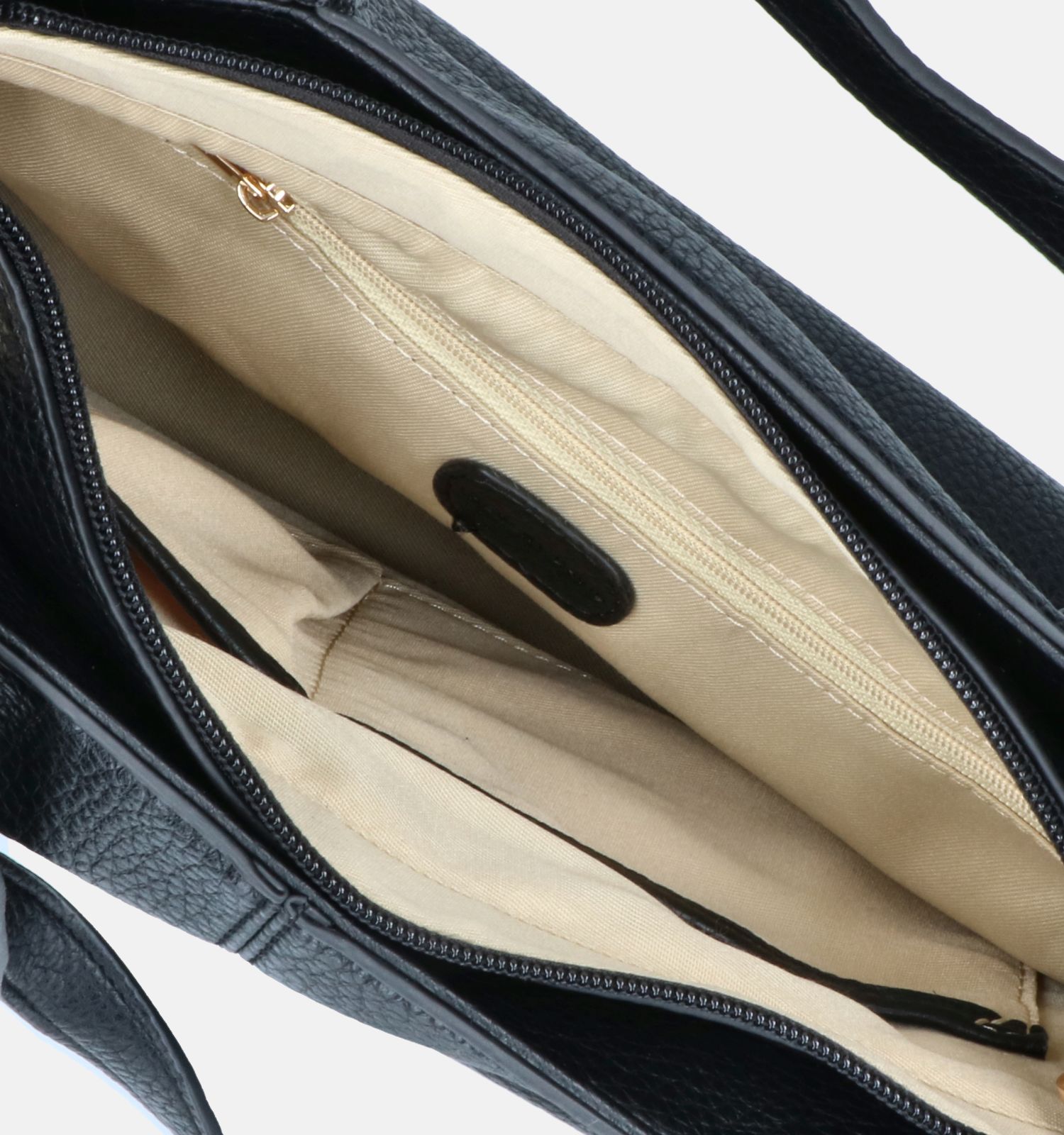 Transformeer deze Laurent David schoudertas in een leuke crossbodytas met behulp van de riem die gratis wordt bijgeleverd. Deze extra riem bevestig je in één-twee-drie aan de tas en haal je er even snel terug af. Zo kies jij hoe je deze zwarte Laurent David meeneemt, aan de schouder via de kortere riem of schuin over jouw lichaam via de langere crossbodyriem. Over multifunctioneel gesproken!