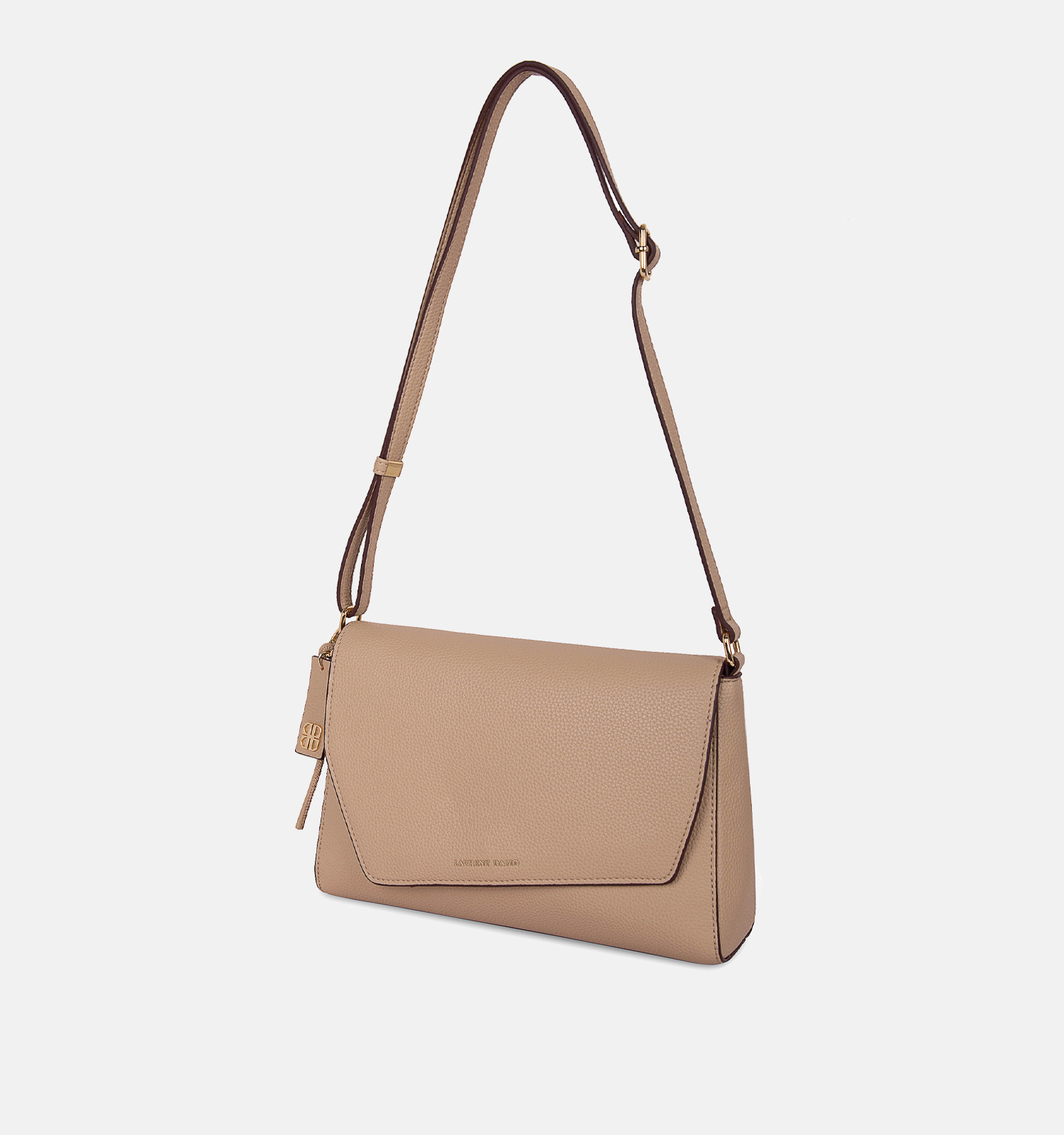 Deze taupe schoudertas van Laurent David is vervaardigd uit stevige materialen (zoals ) zodat de inhoud van de tas veilig opgeborgen blijft. Met als afmetingen 27 cm x 7 cm x 19 cm heeft deze tas bovendien de perfecte middelmaat!