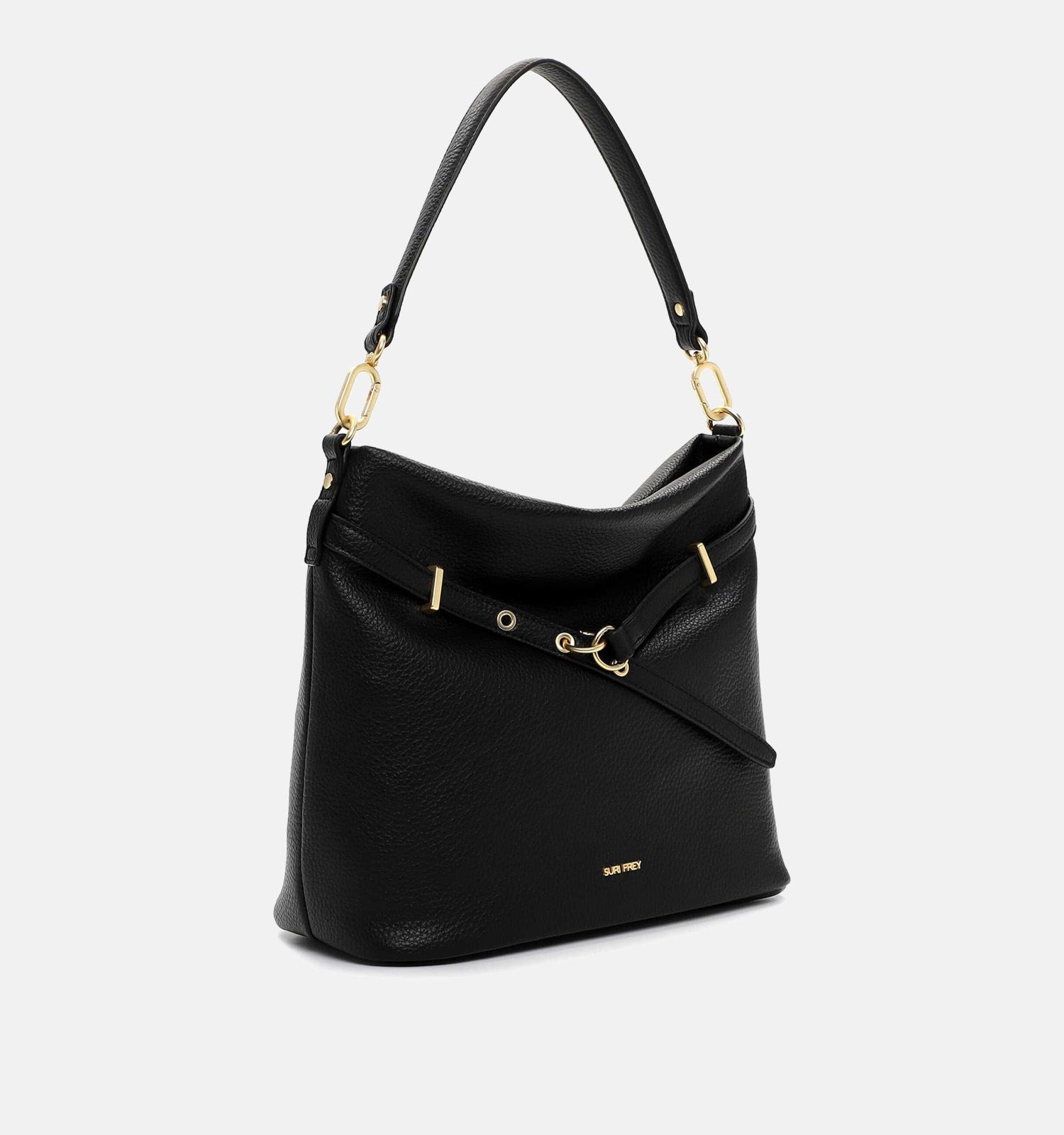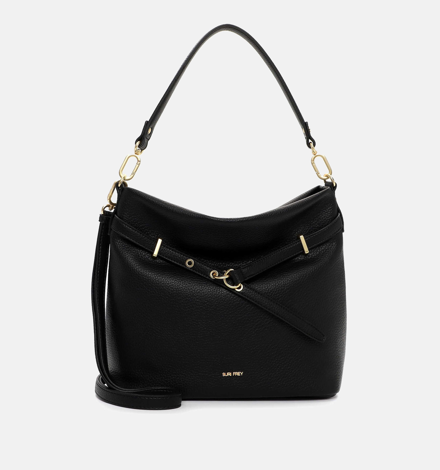 Door het soepele materiaal (kunstleer) ligt ze bovendien zacht en comfortabel in de hand. Deze zwarte eyecatcher van het merk Suri Frey is een praktisch en veelzijdig accessoire! Een must-have.