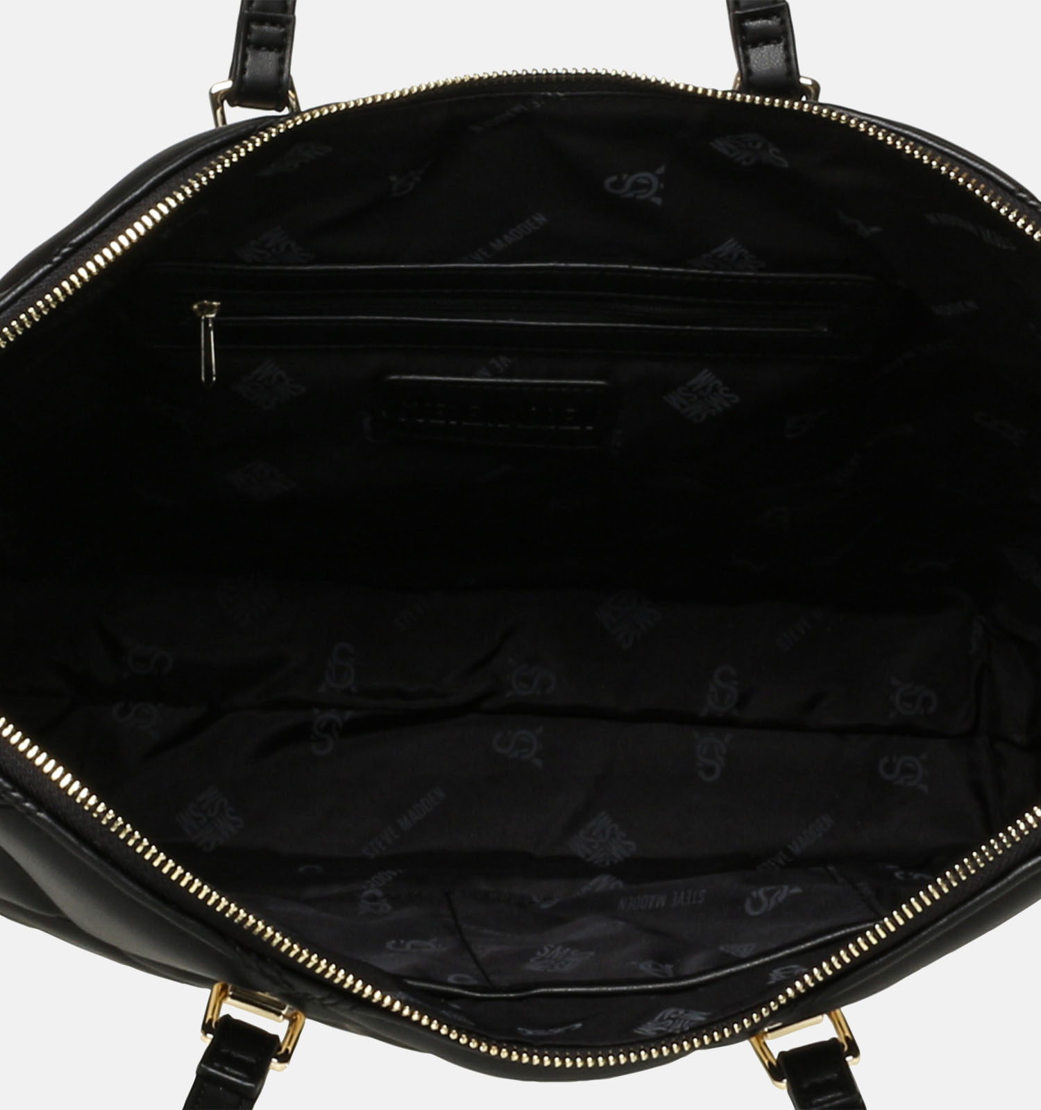 Shoppertassen hebben een minimalistische en moderne look, in combinatie met een ruim interieur. Waarom zou je met meerdere kleine tassen rondzeulen, als je alles in één grote tas kan steken? Dat maakt shoppers een populaire keuze om dagdagelijks te gebruiken. Dit zwarte exemplaar van het topmerk Steve Madden zal ongetwijfeld jouw nieuwe favoriet worden.