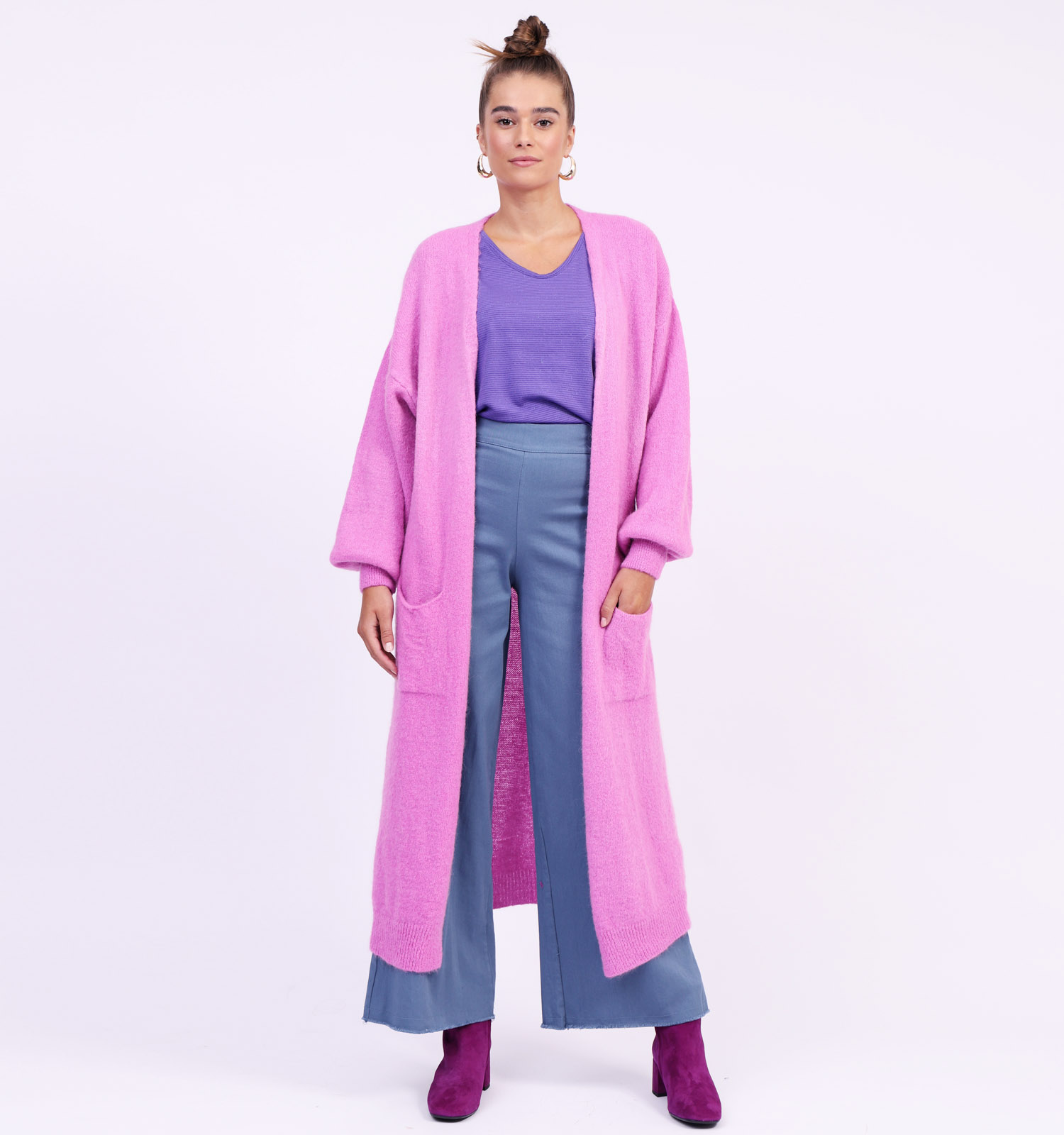 Style deze roze cardigan zoals de populairste namen in de modewereld het doen: casual-chic, bovenop jouw favoriete jeansbroek, met het onderste knoopje open voor die modieuze toets nonchalantie, en de mouwen één keertje omgeslagen. Mag het wat klassieker voor je? Draag deze Dolce C. cardigan dan helemaal open, over een lange jurk, eventueel met een nette riem erover om je taille te accentueren. De stylingmogelijkheden zijn gewoonweg ein-de-loos: jij bepaalt jouw look!