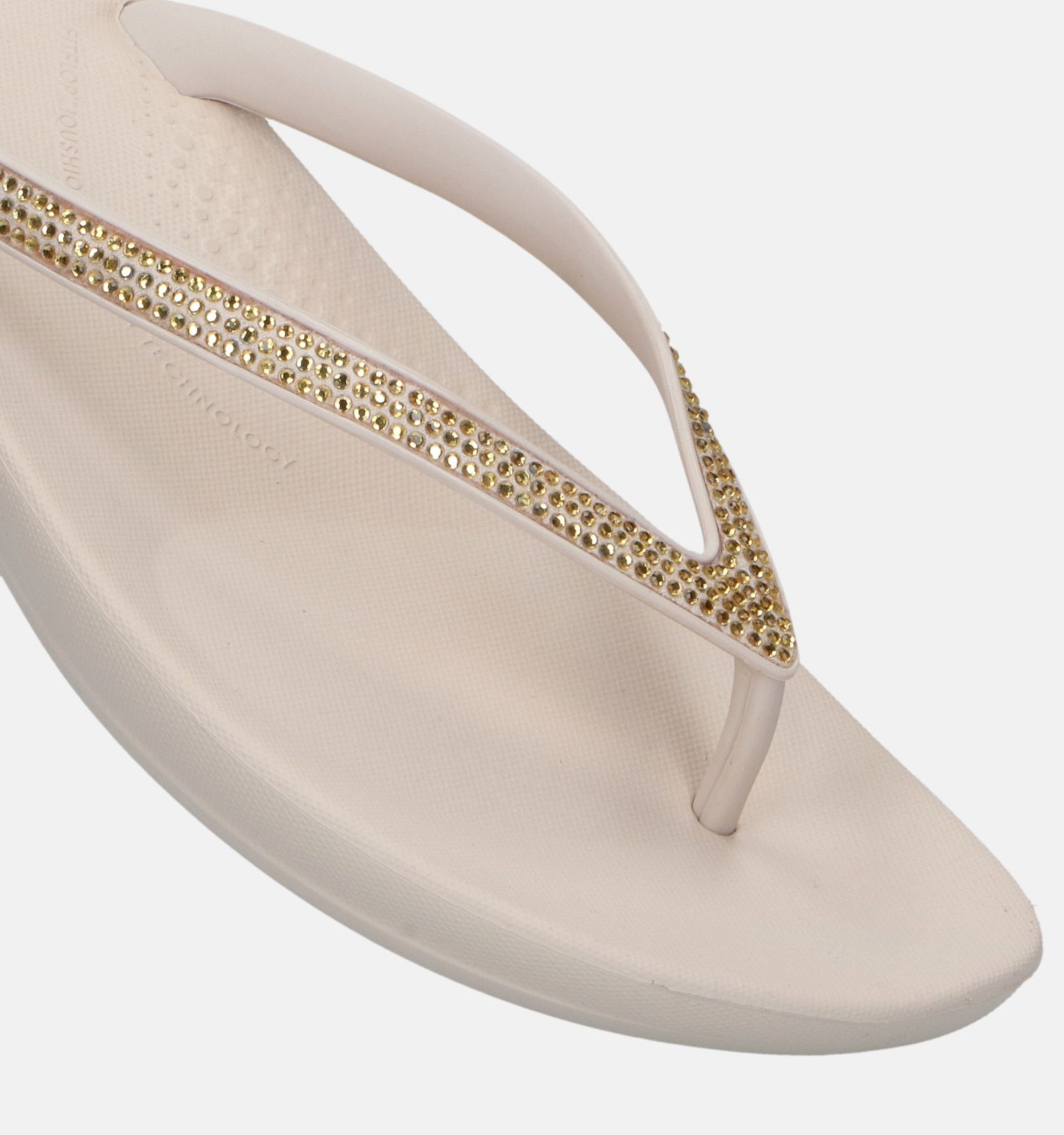 Met FitFlop schoenen aan je voeten kan je de wereld aan! De eerste FitFlop slippers kwamen in 2006 op de markt. Oprichtster Marcia Kilgore had een duidelijke missie: de meest comfortabele schoenen ter wereld creëren. Daarvoor ging ze te rade bij twee Britse experts in de biomechanica, Dr David Cook en Darren James. Samen ontwikkelden ze het Microwobbleboard. Dat is een ingenieuze laag tussen de binnen- en buitenzool van de FitFlop schoen. Ze bestaat uit 3 consistenties met elk een eigen functie voor een fantastisch gevoel aan je voeten: schokdemping, stabiliteit en drukverlaging. Ook vandaag staat maximaal ergonomisch comfort nog steeds centraal bij het design team van FitFlop. De slanke SupercomFF-middenzool is gemaakt van een van nature dempend en drukverdelend materiaal met dubbele densiteit en werd ergonomisch ontwikkeld en gevormd om perfect onder de voeten te passen, zodat uw schoenen u echt 'voortbewegen'.
