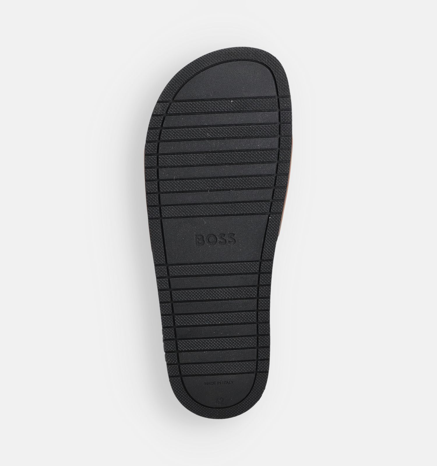 BOSS badslippers zijn een meerwaarde voor elke herenschoenencollectie! Poolslides zijn comfortabel en multifunctioneel. Strandslippers zoals dit bruine model van BOSS zijn al lang niet meer exclusief voor op het strand.