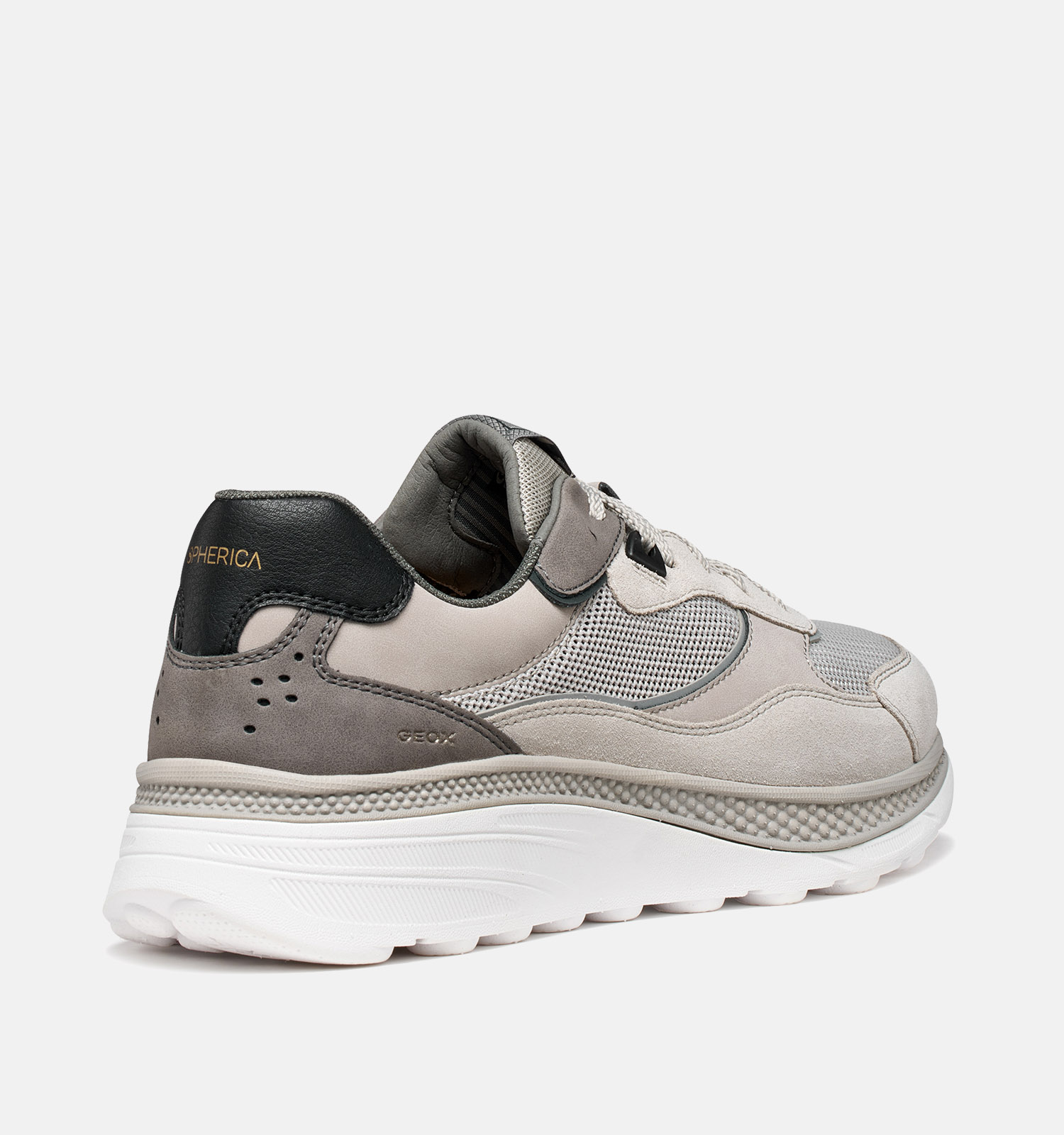 Deze grijze sneakers maken deel uit van de nieuwe Spherica collectie van Geox! Geox Spherica herenschoenen zijn een echte innovatie in de schoenenwereld. Deze sneakers zijn ademend, ultralicht en hebben drukverlagende binnenzolen. De unieke pasvorm zorgt voor immens stapcomfort, dat verschil zal je voelbaar merken. Uiteraard hebben deze herensneakers ook de gepatenteerde Geox-zolen, waardoor zweet wordt afgevoerd via microgaatjes in de buitenzolen. Dat houdt herenvoeten de hele dag lang droog. Ervaar comfort zoals nooit te voren, met deze Geox Spherica sneakers voor heren!