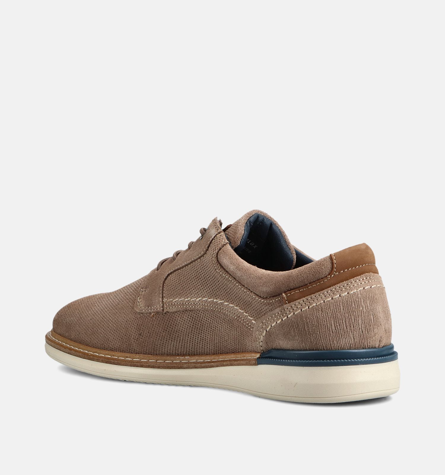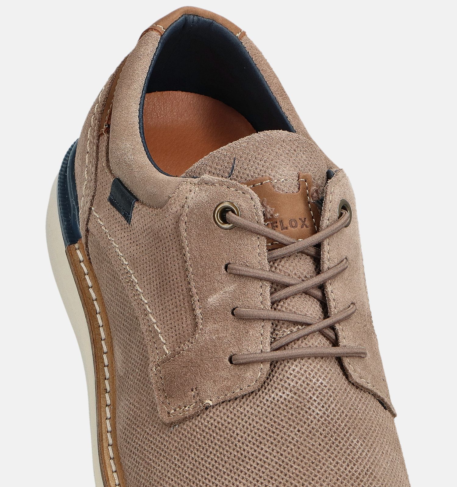 Deze geklede veterschoenen van het merk Bufflox stralen klasse, elegantie en professionaliteit uit. Deze herenschoenen uit taupe suède zijn een uitstekende keuze voor (semi-)formele gelegenheden zoals recepties, trouwfeesten, familiefeesten en business events zoals beurzen, seminaries of netwerkmomenten.