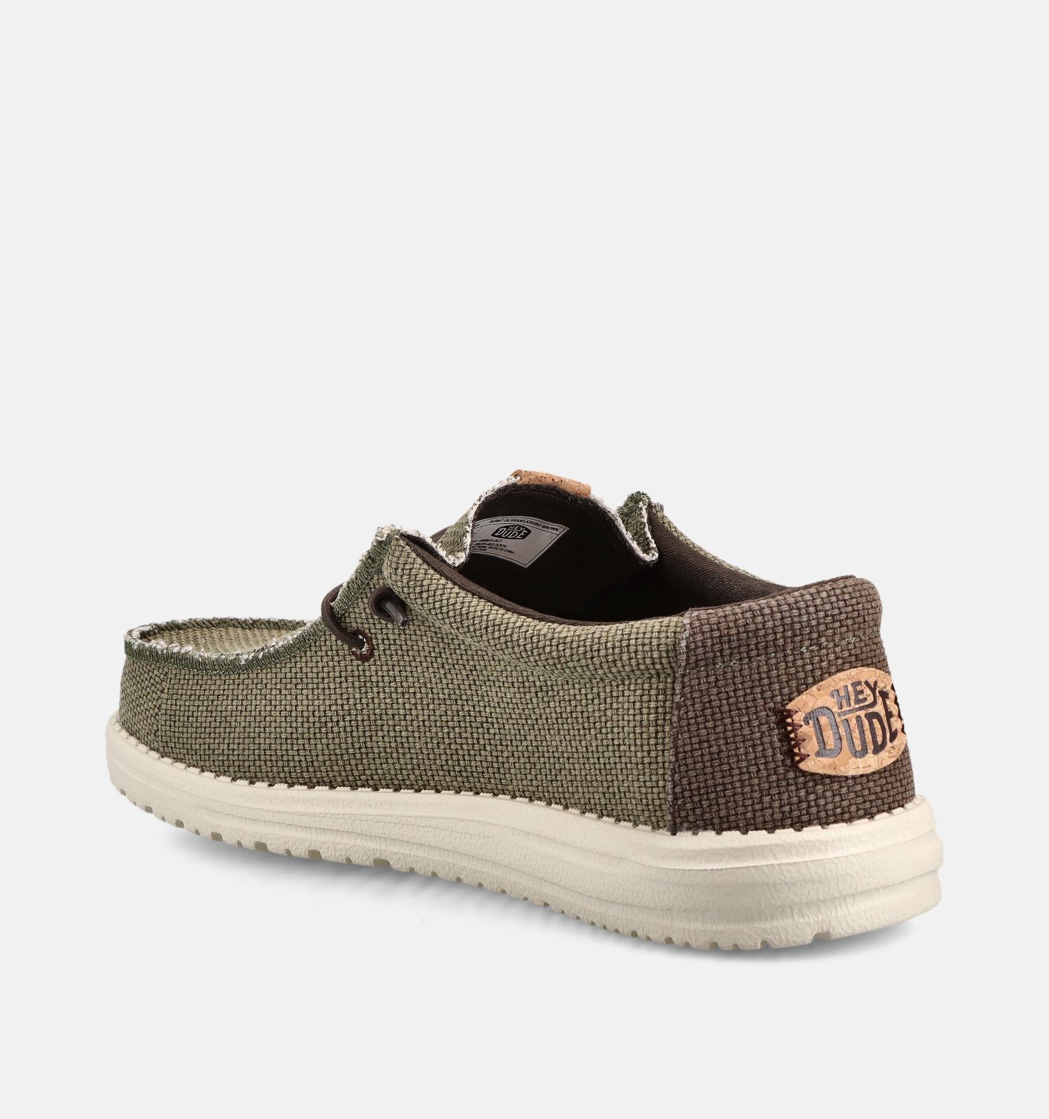 Deze HEYDUDE instappers in groene stof zijn een slimme toevoeging aan je schoenencollectie. Instapschoenen voor heren hebben geen veters, ritsen of gespen – je stapt er gewoon in, en klaar is Kees. Efficiënt en comfortabel: precies wat een moderne man zoals jij nodig heeft. Dit praktische slip-on model van HEYDUDE in groen bespaart je tijd, zonder in te leveren op uitstraling en stijl. Het strakke design in groene stof maakt deze instappers bovendien geschikt voor bijna elke herenoutfit – van casual tot gekleed. Een paar herenschoenen waar je altijd op kunt rekenen.