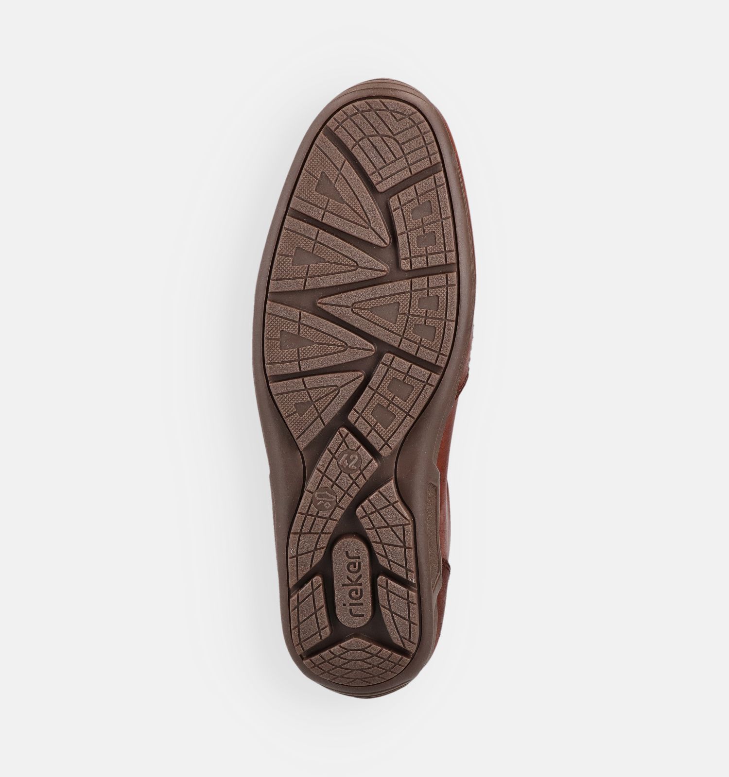 Comfortmerk Rieker maakt anti-stress herenschoenen die de wandelimpact op jouw lichaam sterk vermindert en de hele dag door optimaal comfort geven. Dit komt o.a. door de schokdempende schoenenzolen van deze herenlage schoenen in de kleur cognac. Deze zolen absorberen de wandelschokken en verspreiden vervolgens de druk over de hele zool heen. De pasvorm van deze cognac lage schoenen is ergonomisch en houdt rekening met het feit dat alle voeten licht opzwellen tegen het einde van de dag.