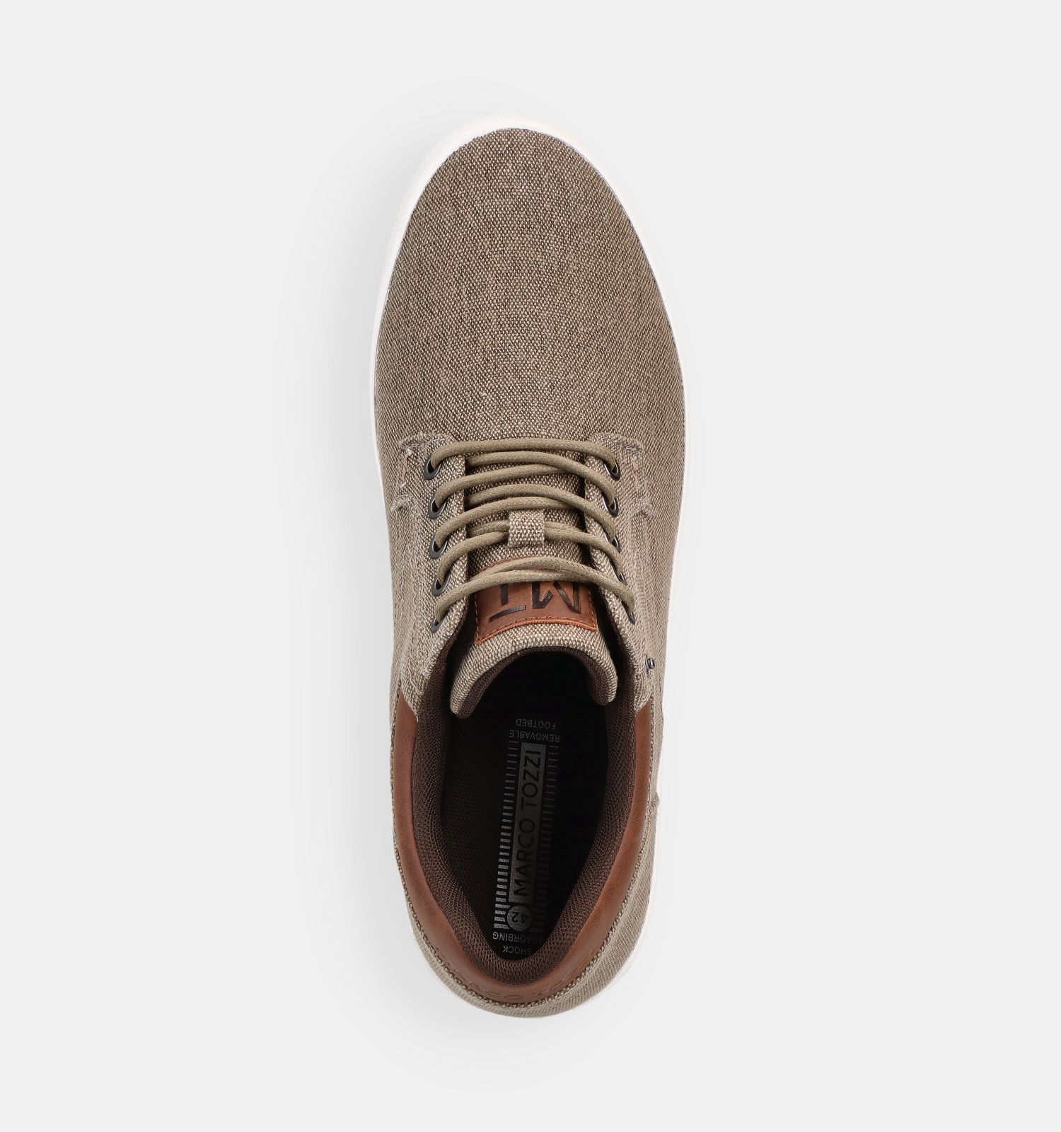 Een tip: pas deze taupe Marco Tozzi sneakers op het einde van de dag. Herenvoeten zwellen namelijk in de loop van de dag. Als deze Marco Tozzi herensneakers 's avonds perfect passen, dan ben je honderd procent zeker dat je de juiste schoenmaat gekozen hebt!