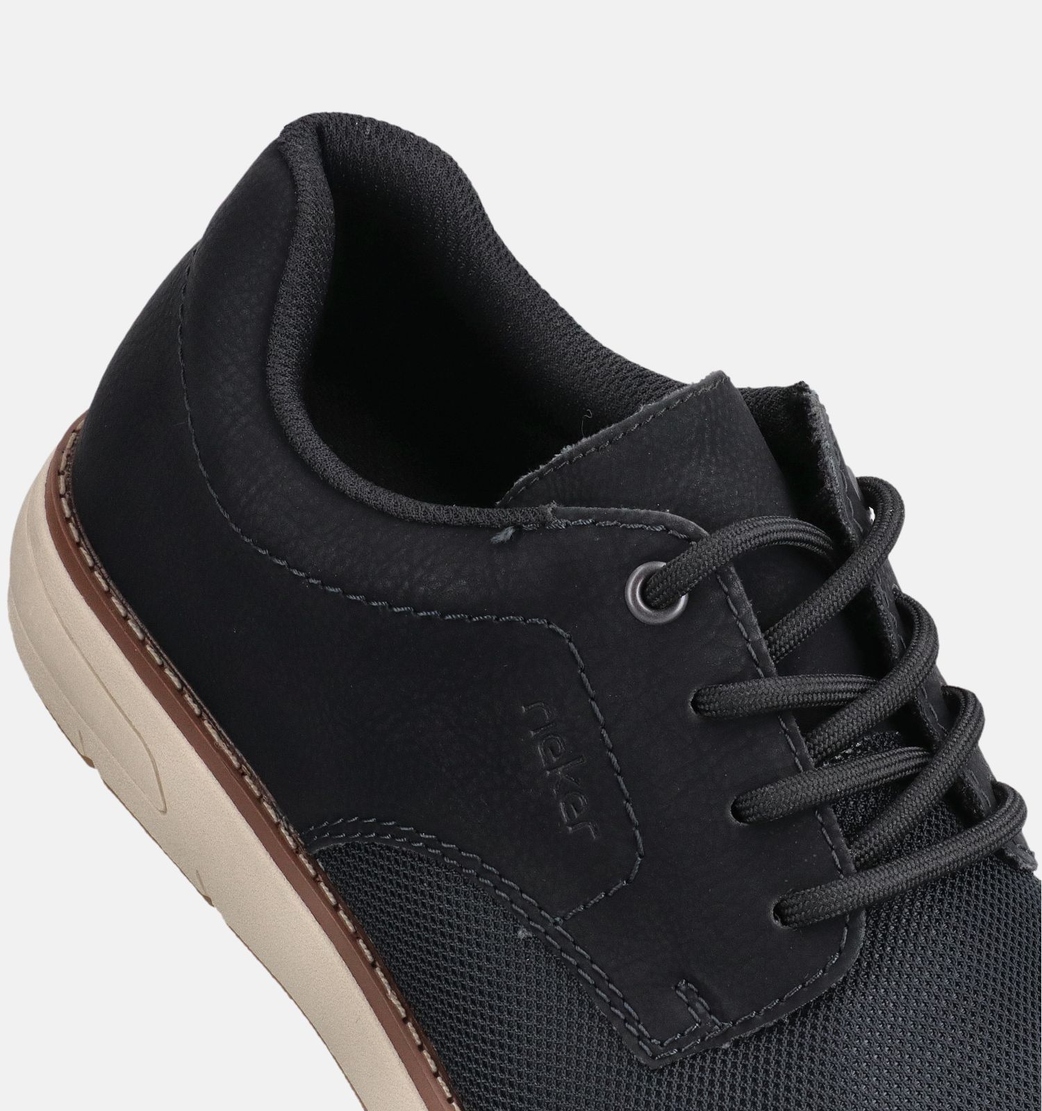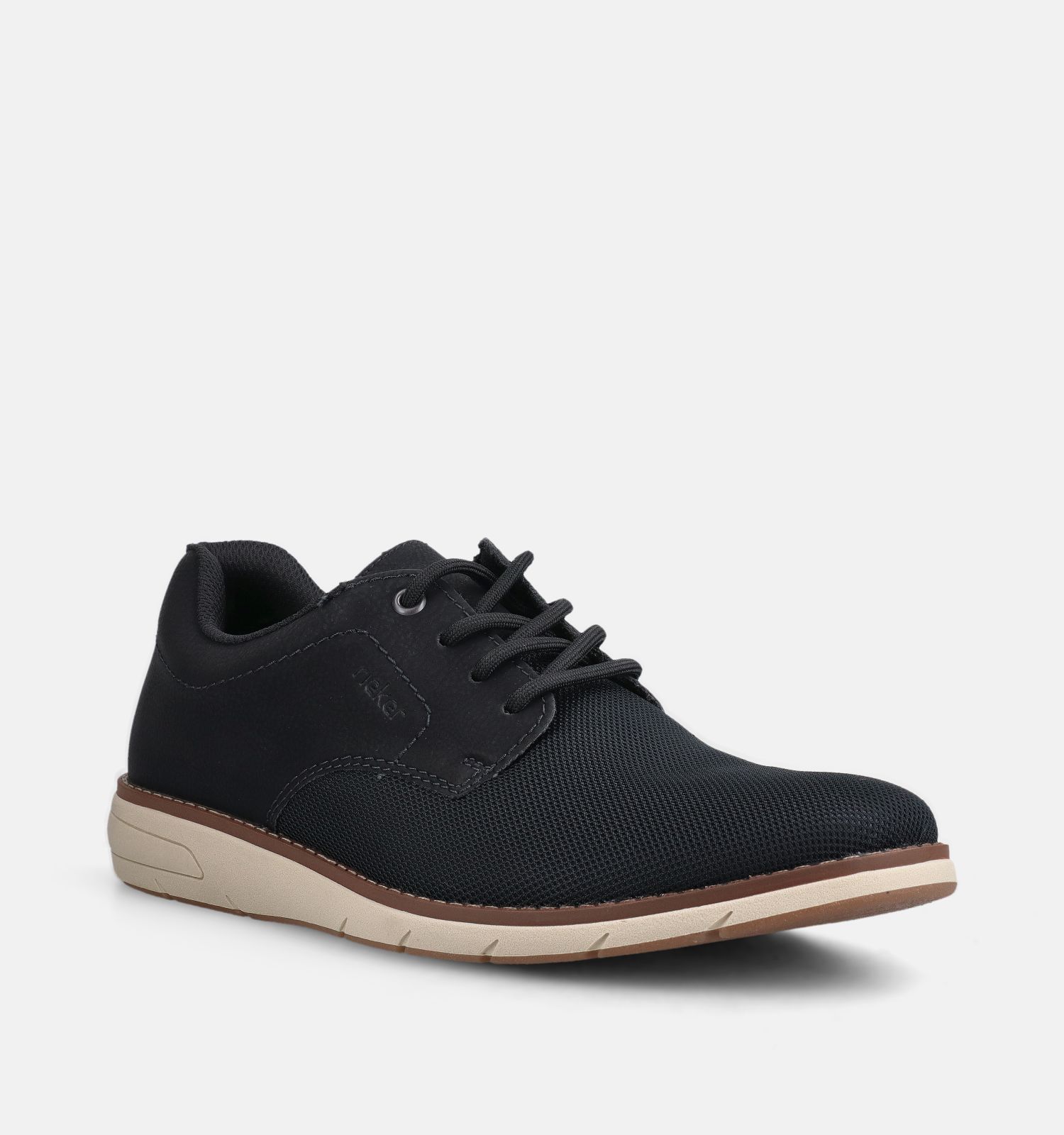 Deze lage schoenen voor heren zijn vervaardigd uit extra sterk kunstleer, met comfortabel stof aan de binnenkant. Deze kwalitatieve materialen zijn licht qua gewicht, een antidotum tegen dat herkenbare gevoel dat jouw voeten na een tijd zwaar beginnen aan te voelen. Deze zwarte heren lage schoenen van Rieker hebben een vetersluiting.